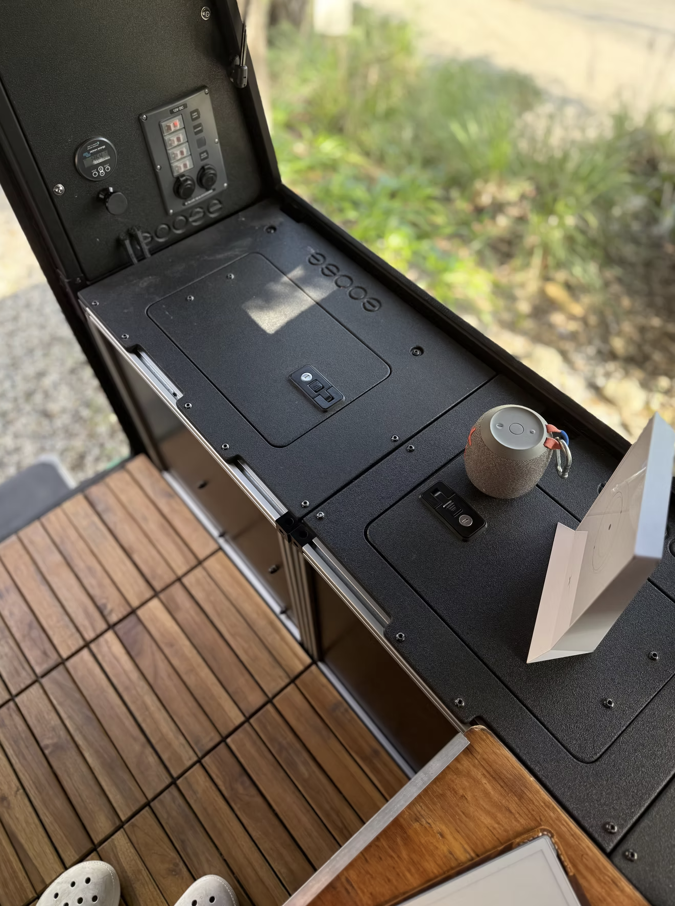 - Battle Born 100-amp-hour lithium house battery with Victron 600-watt inverter and 240 watts of Sunflex solar