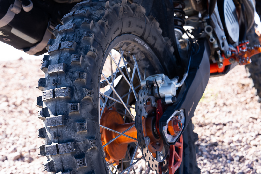 Combined with premium, dirt-dominant tire combinations from Motoz and Michelin, we’ve enjoyed decent traction and performance across varied territories with some slab. Paired with Bib Mousse to navigate cactus-strewn landscapes, such as the rugged back trails we encountered in unison with a Jeep couple departing from San Francisco Mission in Baja California, we covered 3,000 miles on each set before the rears needed replacement.