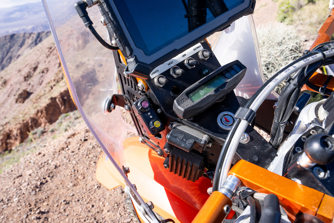 Taco Moto’s owner, Mike Spurgin, agreed that we exceeded the general ride parameters of these KTMs to accommodate our loads and the extensive miles ahead, which led to rebuilding and tuning the stock suspensions. With upgraded, heavy-duty springs and precise re-valving, we received a plush baseline setting for silky comfort and performance over uneven terrain, calibrated to our individual riding styles.