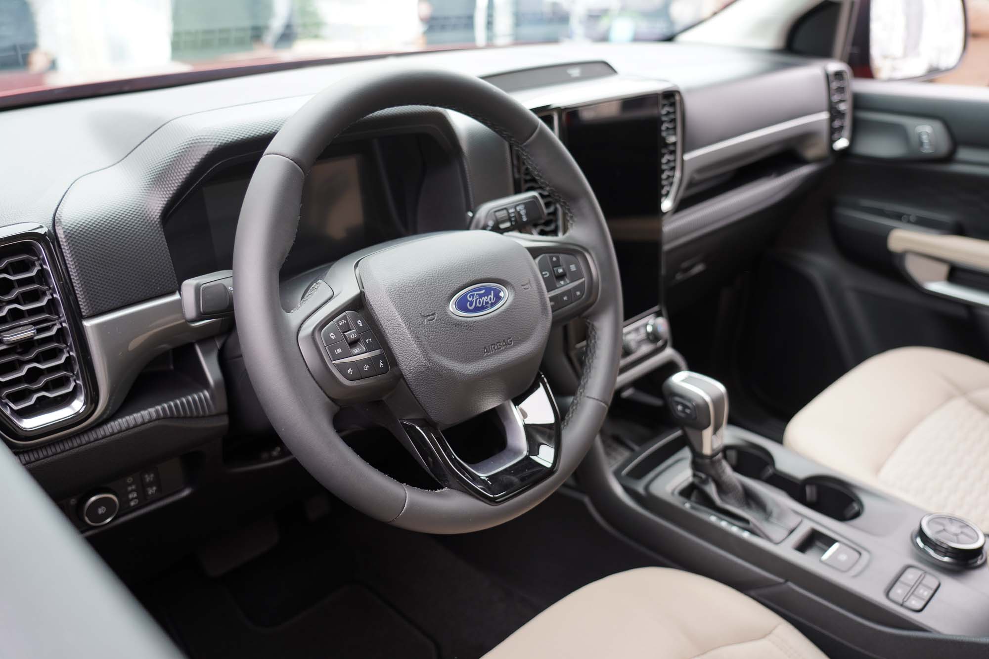 The Ranger offers the driver and passenger easy access to the most common controls. Mechanical buttons and dials control the basics of the HVAC system and radio, while the touch screen offers fine-tuning of temperature, air vents, and heated seats. Nothing seems to be buried too deeply into endless pages of options. A large 12.4-inch touchscreen display features Apple CarPlay and Android Auto compatibility, a turn-by-turn navigation system, and multiple camera views.