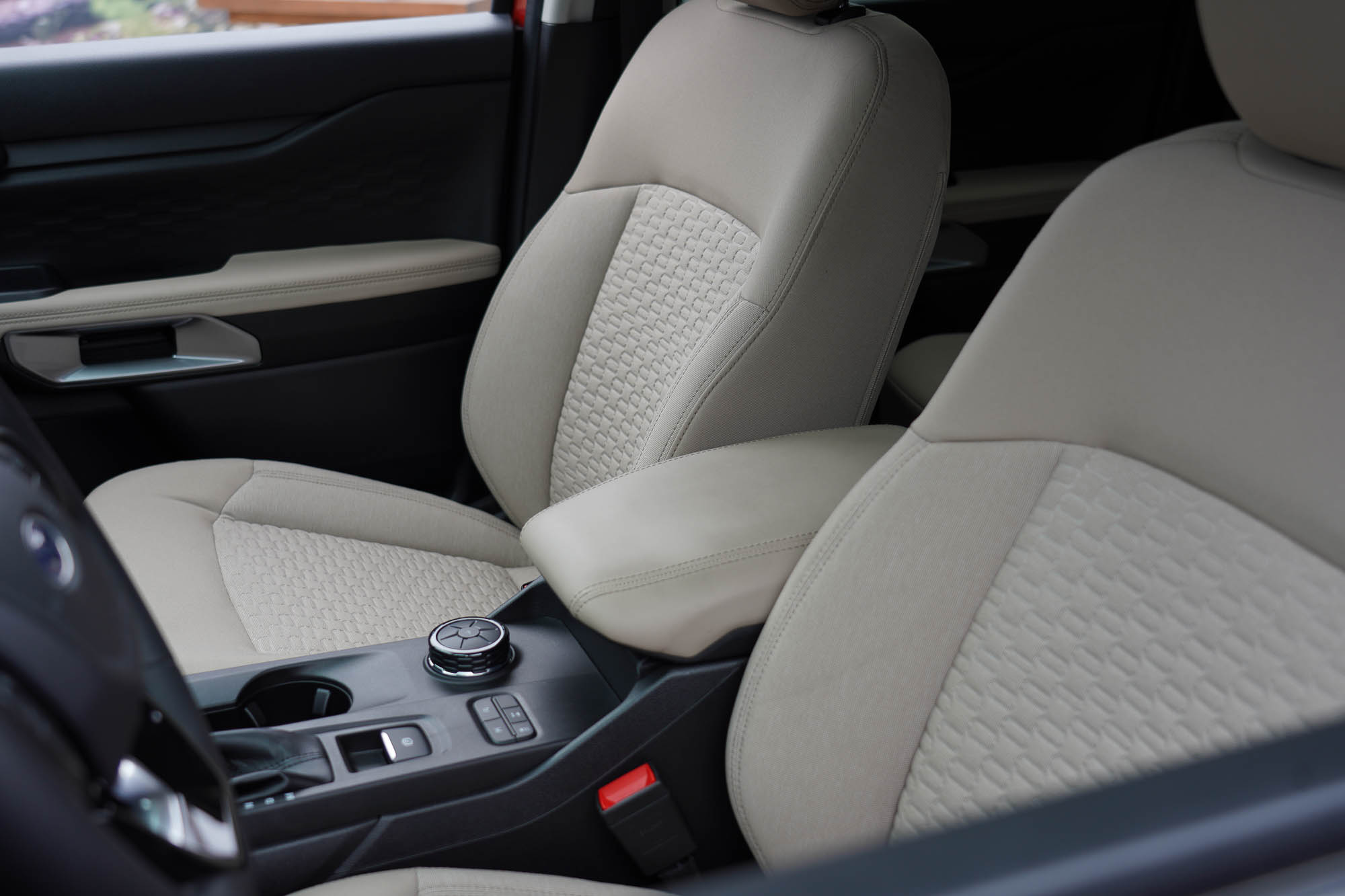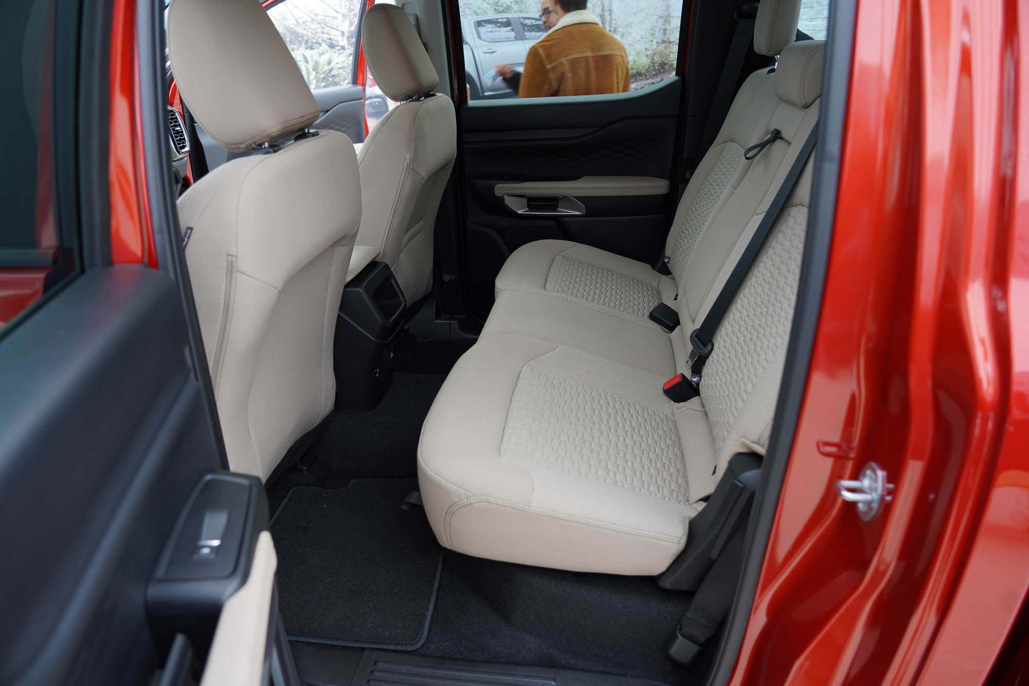 The seven different drive modes were noticeable and effective, each having a slightly different response to driver inputs. The narrow width of the Ranger allows for good vehicle placement, and 9.3 inches of ground clearance feels adequate. I did not have the chance to load anything into the 5-foot bed, but I did note that it was well protected with a spay-in liner, had multiple bolt-on tie-down points, and the tailgate was surprisingly light thanks to struts taking the weight on the way down and a torsion bar helping to pick it up when closing. The interior of the Ranger is spacious and the light brown interior helped to brighten the space. The back seat is comfortable, with adequate legroom. I’m 6 feet tall, and there is plenty of interior height, so there is no feeling of being cramped. The integration of technology into the Ranger seems to be thoughtfully done to facilitate the user experience but not so much as to feel gimmicky or overwhelming.