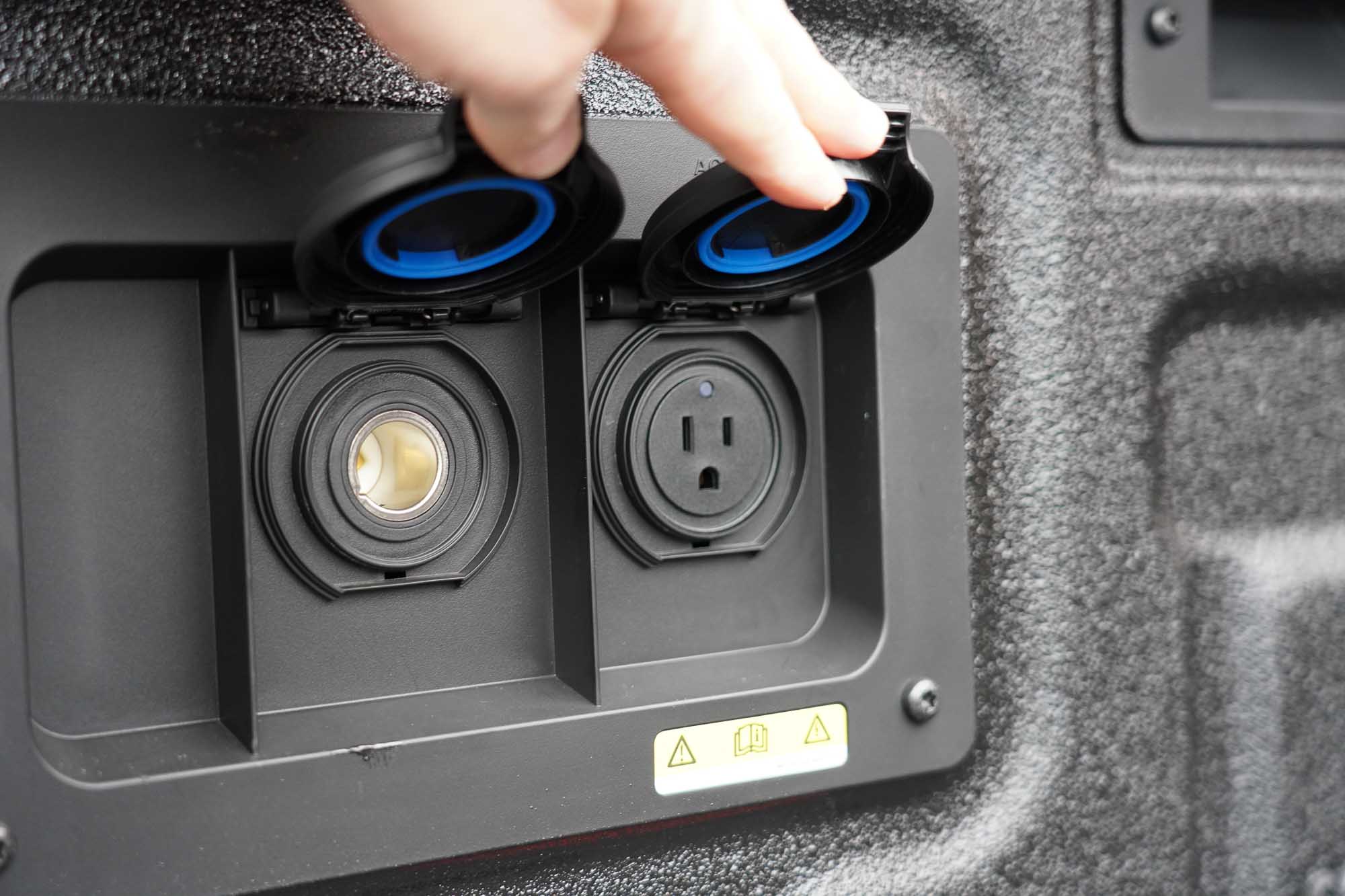 Power charging features include wireless phone charging, a 400W inverter, and USB A and C charging ports. A forward and reverse sensing system utilizes sensors in the bumpers while cameras on the front grill, side mirrors, and tailgate provide 360-degree viewing around the vehicle.