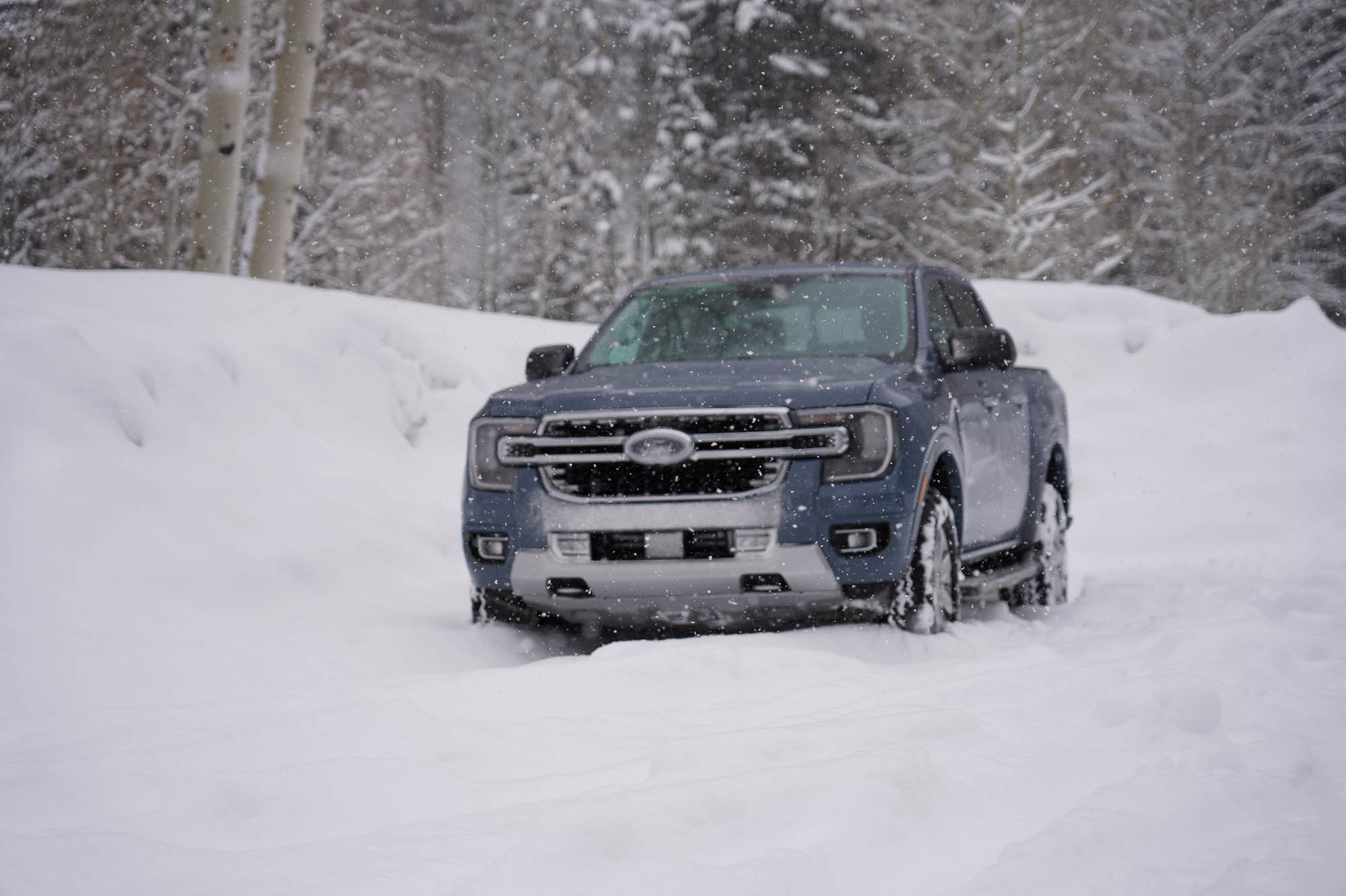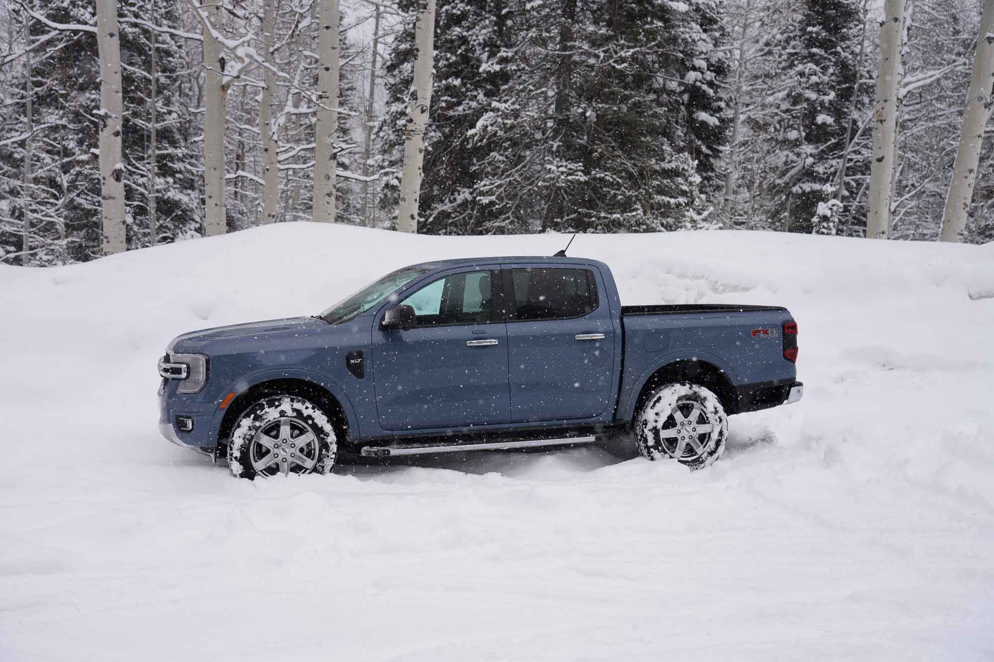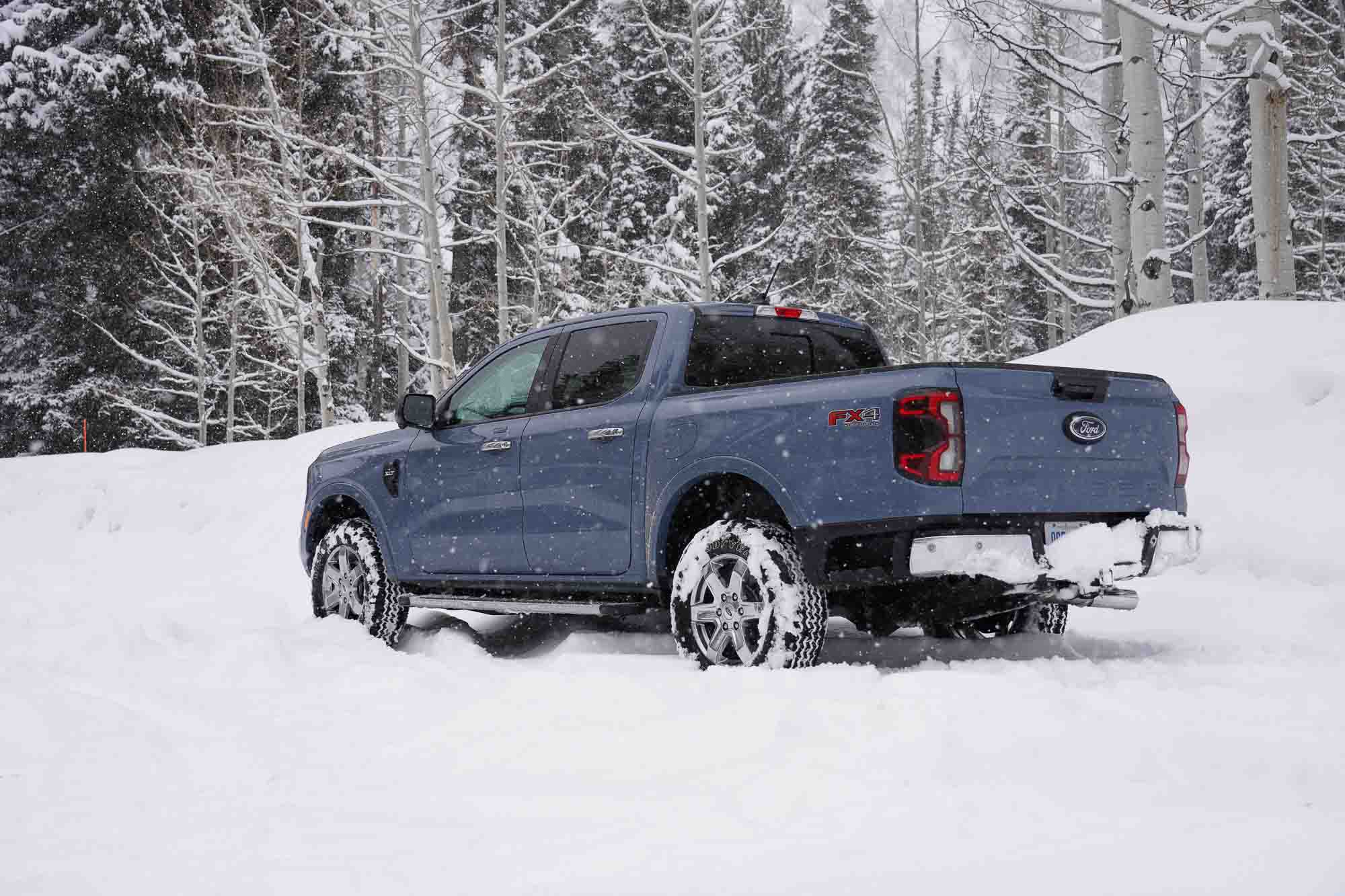 Last week, I spent the day driving the new 2024 Ford Ranger throughout the Wasatch Mountains just outside of Salt Lake City, Utah. With a snowstorm in the area, I encountered slick, wet roads, high winds, rain, snow, and, at one point, about a foot of fresh powder on the ground. I tested the 4×4 Lariat model and the 4×4 XLT model with the FX4 offroad package. After seeing the Ranger lineup in static display last year in Detroit, I’d been awaiting this first drive opportunity.