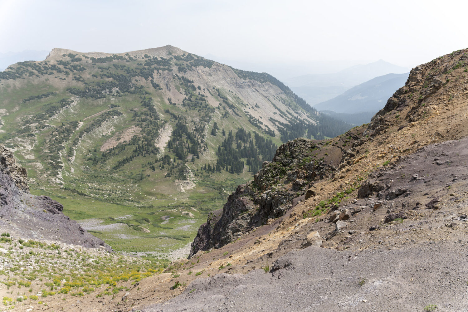 Clockwise from top left: Cow Parsnip, the Scofield Pass summit, relaxing under Populus Tremuloides (Quaking Aspen), and the glowing coals of our campfire.