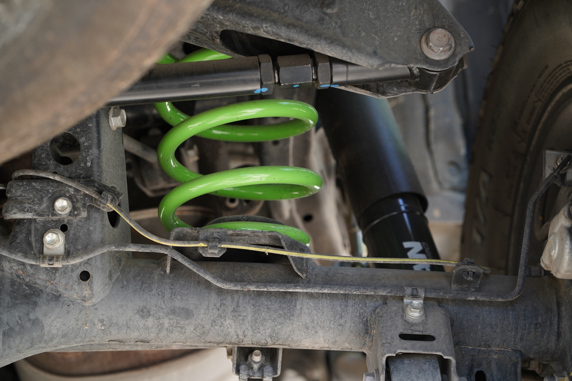 For the rear suspension, we did elect to go with the 2.5-inch taller and higher rate coils. Their medium performance coils provide a 20-percent increase in load capacity while still retaining a compliant ride. This coil is ideal for vehicles that may be lightly loaded for daily driver duties and then stocked with equipment and additional passengers for longer trips further afield. As an important consideration, the Stage 3 system includes an adjustable Panhard rod to center the rear axle and longer sway bar end links to put the bar back at the appropriate leverage point.