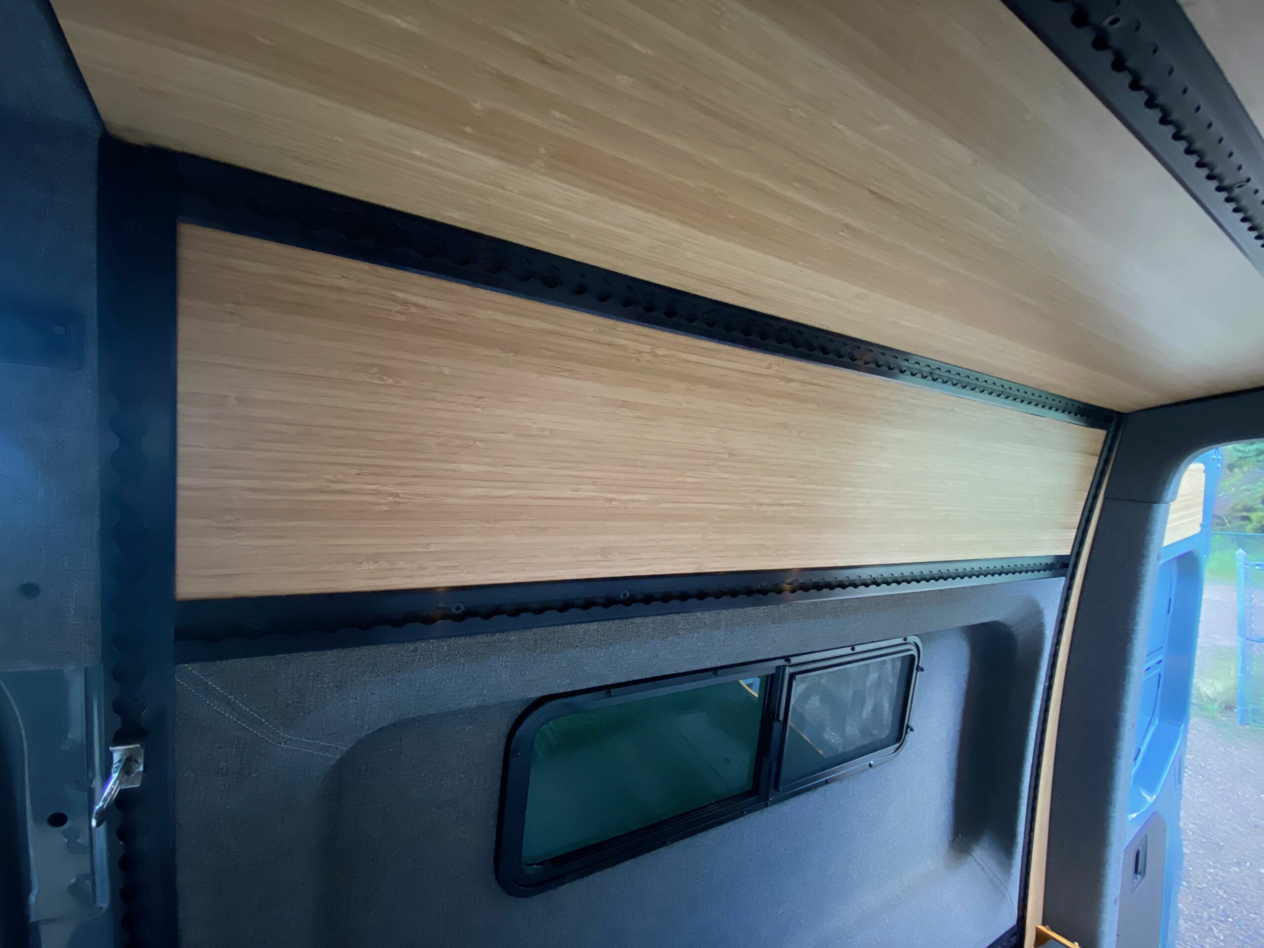 Two things stood out about this build. First, the fit and finish of the materials, particularly the Marathon Tweed fabric that covered the walls and parts of the ceiling, are first-rate. It has a premium feel and seems like it will gamely resist the regular wear and tear of daily camping life for a long time. Ditto for the flooring and the optional bamboo ceiling inserts, which also add a touch of brightness and Scandinavian-inspired design to the habitat. Second, the modularity of the components makes configuring the interior for multiple scenarios a snap. Adventure Wagon promotes the idea that your van shouldn’t be single-use—it’s a van, after all, it should be able to do lots of van things besides going on epic adventures.