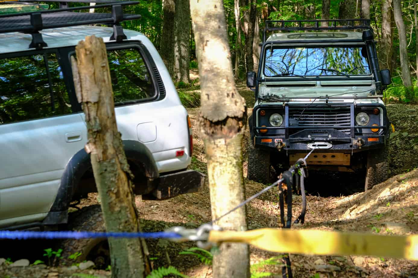 A total of three to be precise. As mentioned previously, pulley blocks allow you to change directions and increase the applied pulling force to a vehicle. With three pulley blocks, it’s possible to do things like use a rear vehicle to pull a front vehicle forwards, pull your own vehicle backwards, or gain a 3:1 mechanical advantage.