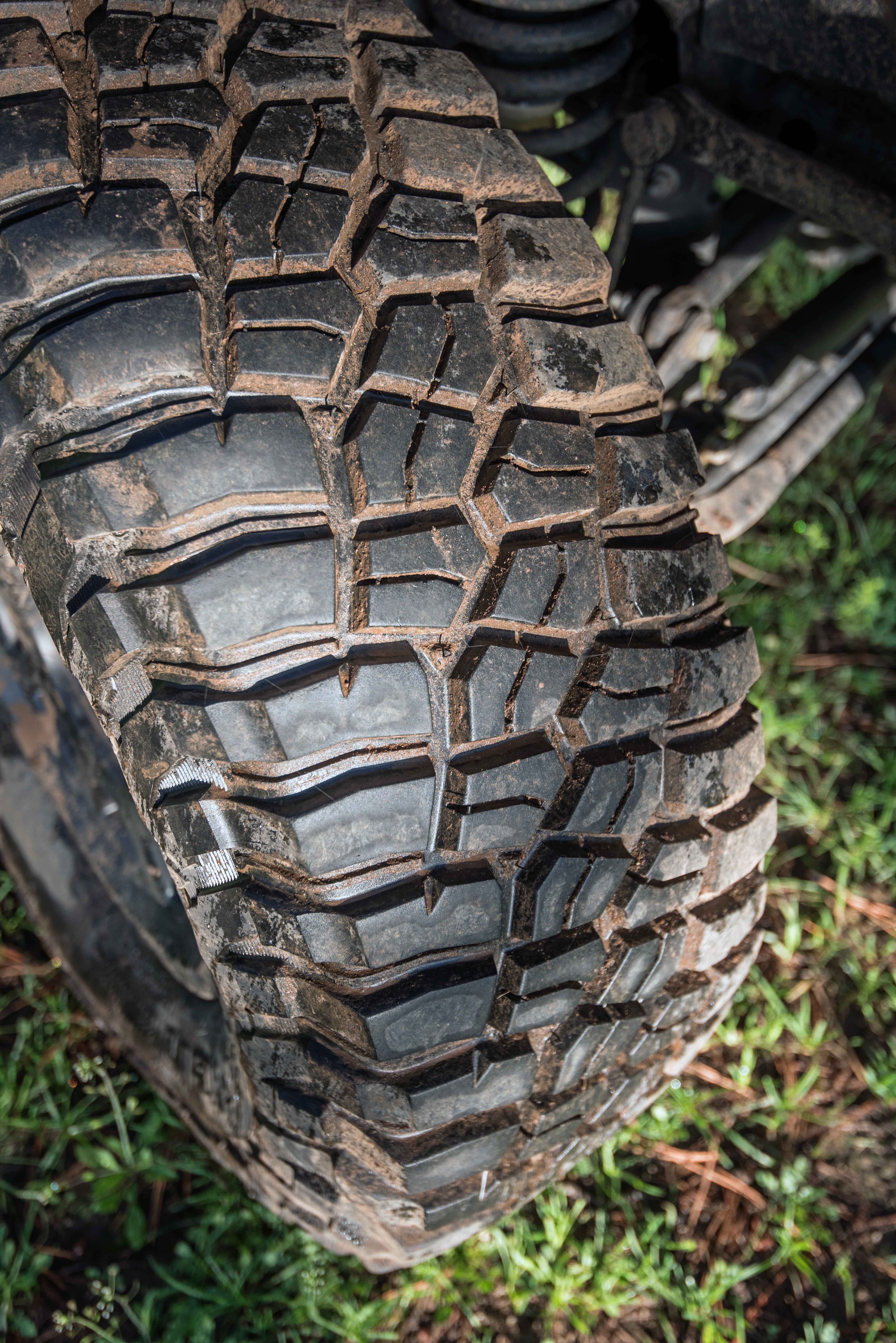 While most low-range aficionados build their four-wheel-drive vehicles for maximum capability to conquer challenging terrain, the reality is that the majority of mileage is often logged over pavement. While the BFGoodrich KM3 has incredibly strong off-road attributes (we’ll cover this soon), the tire’s on-pavement performance should be strongly considered for enthusiasts that use their rigs primarily for daily driving, road tripping, and pavement pursuits in between the backroads. A common gripe with aggressive mud-terrain tires is the amount of noise and vibration they produce over asphalt, especially at highway speeds. My first impression of the KM3 was that they were noticeably quieter and smoother than the KM2. While the KM3 was chiefly designed to tackle tough terrain, mud, and rocks, the tire’s reworked tread pattern helps minimize the adverse side effects of running big blocks on tarmac. While the KM2 and KM3 may look similar, the main tread pattern of the KM3 has been reworked with siping revisions, block sculpture redesign, compound changes, and by reducing the overall spacing between tread blocks. However, within a few thousand miles of hard fieldwork use, the KM3’s noise level on pavement did increase moderately at speeds above 50 mph. My view on the noise increase, best described as a transition from a whir to a hum, was that it related to the smoothing and rounding of the tread block edges. This type of wear is somewhat normal for mud-terrain block patterns as the crisp tread edges become scrubbed during aired-down off-pavement use. Mall crawlers need not worry about this subtle issue. Even with the noise increase, the KM3 has not approached the droning and volume levels of the KM2. Additional pavement handling improvements over the KM2 include the absence of incurable vibrations, vague tracking on hot days, and lackluster wet road performance.