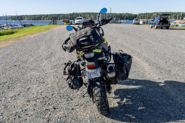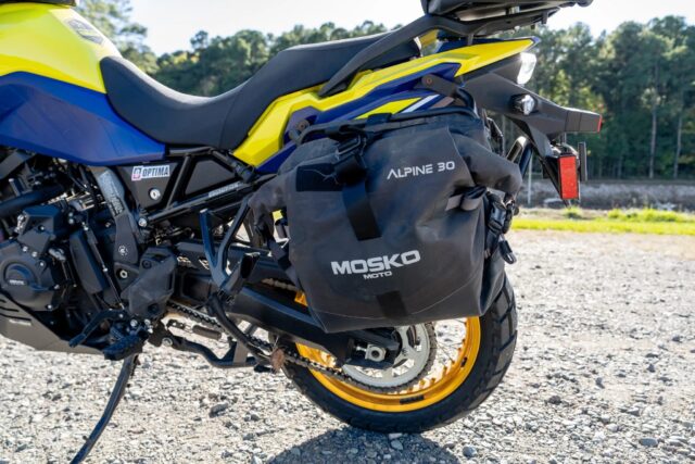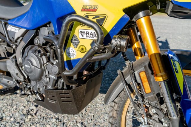 The Overland Expo team fitted the machine with premium adventure components, including Outback Motortek crash bars and skid plates, an Optima lithium battery, Ram mounts for navigation and accessories, waterproof Mosko Moto soft luggage, and Cyclops Adventure Sports auxiliary lighting. The result is a lightweight, go-anywhere motorcycle that embodies the essence of self-sufficient travel.