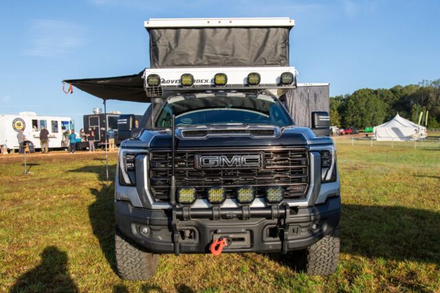 For 2025, the Ultimate Overland Vehicle Build is based on the GMC Sierra 2500 HD AT4X AEV Edition, paired with an Overland Explorer Vehicle’s Back Country 6-foot and 85-inch slide-in truck camper. Built on a fully boxed, high-strength steel frame, the heavy-duty Sierra is engineered for payload and performance in demanding terrain. The AT4X package adds serious off-road credentials, including Multimatic DSSV dampers, heavy-duty steel bumpers, complete underbody skid protection, and a raised air intake. The truck rides on 37-inch BFGoodrich All-Terrain KO2 tires mounted to 18-inch AEV Salta wheels (with a 35-inch spare), providing both traction and durability in rugged environments.