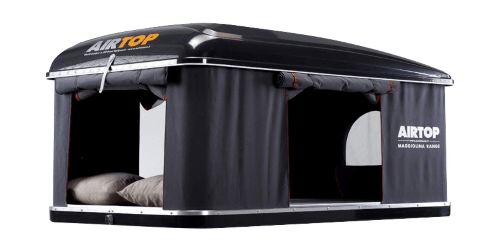 The Grand Tour has been in the Maggiolina lineup for many years and offers users additional headroom over other tents in the catalog. It is their top offering with all the bells and whistles including pre-drilled holes and reinforcements which permit an optional roof rack mounting system like those sold by Thule, Yakima, and others. This allows users to add their own full width crossbars. For those inclined to carry boats, bikes, or other equipment, the Grand Tour has that capacity. Like the Extreme, the strong manual crank mechanisms are capable of lifting heavier loads during setup and breakdown. As is the case with several tents in the Autohome catalog, the Grand Tour is available in two shell colors and multiple fabric colors. Additional charges apply.