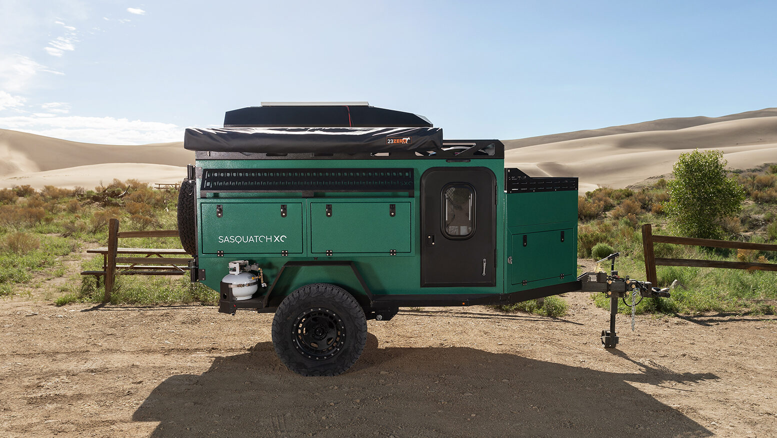 Off Grid Trailers’ Expedition 3.0 is an all-aluminum, entirely off-road–rated trailer boasting an impressive 50-degree departure angle. Thoughtfully equipped with a drop-down kitchen slide, insulated cabin, and queen-size bed, it’s an excellent option for couples who want comfort without compromising capability.