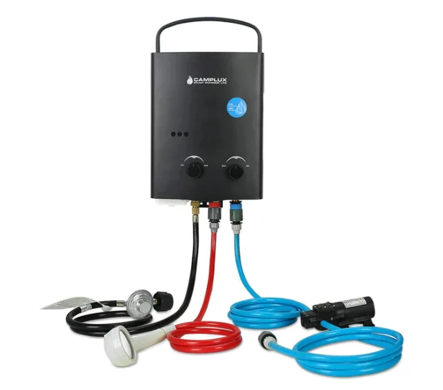 If you’re interested in a very similar setup to the Joolca Portable Water Heating System but on a smaller scale and with a generic Camplux branded water pump that is included in the purchase price, have a look at the Camplux Propane Off-Grid Portable Water Heater.