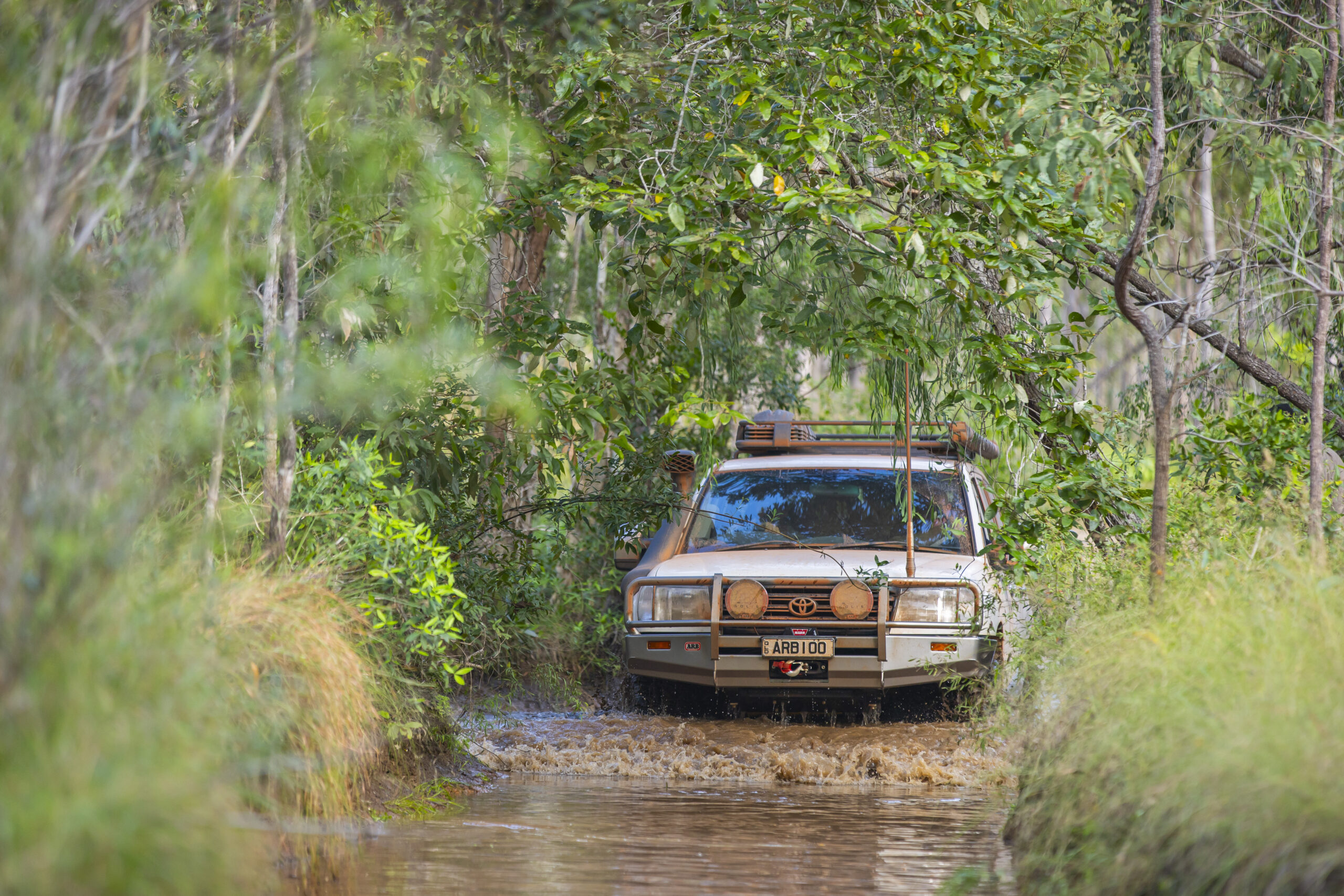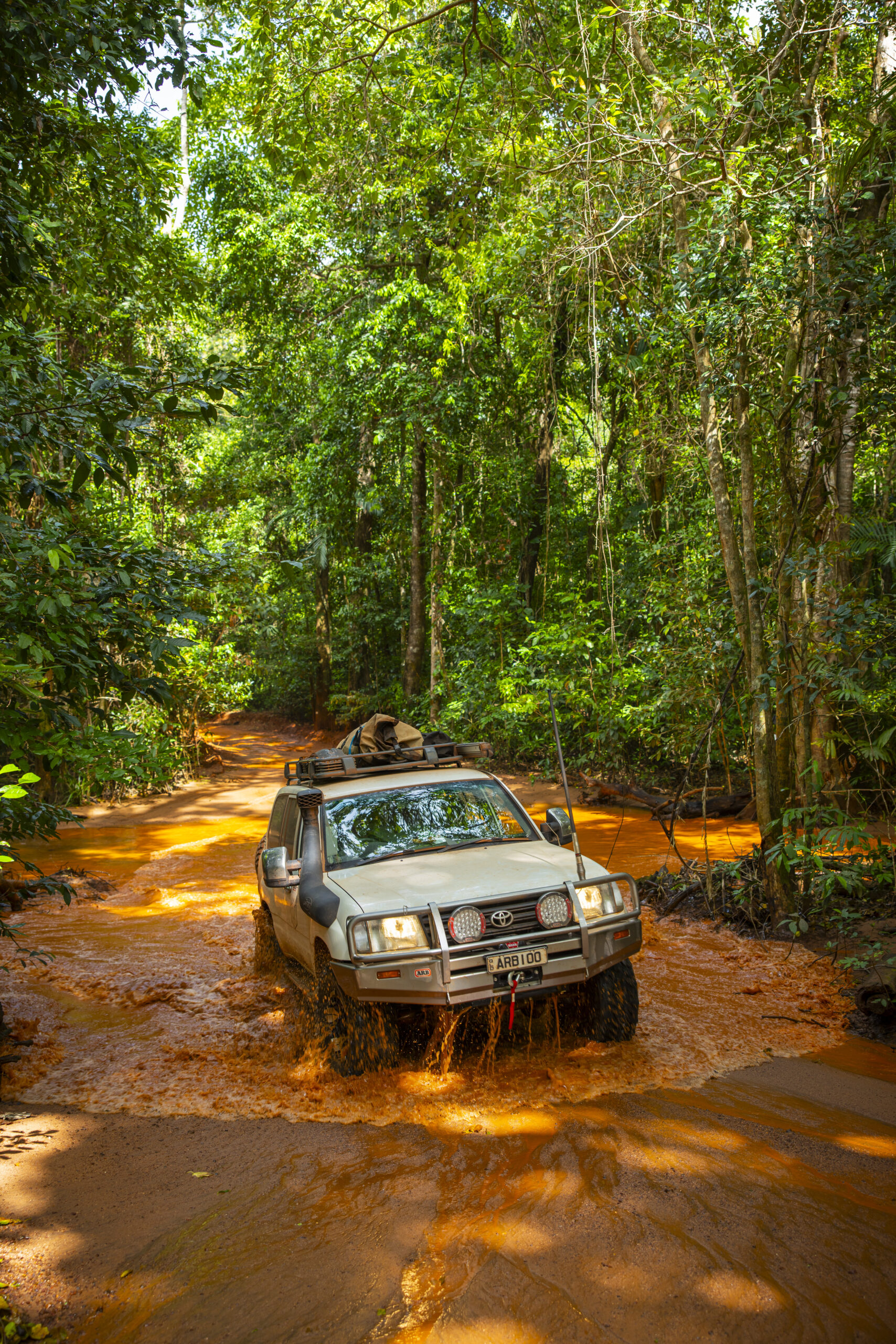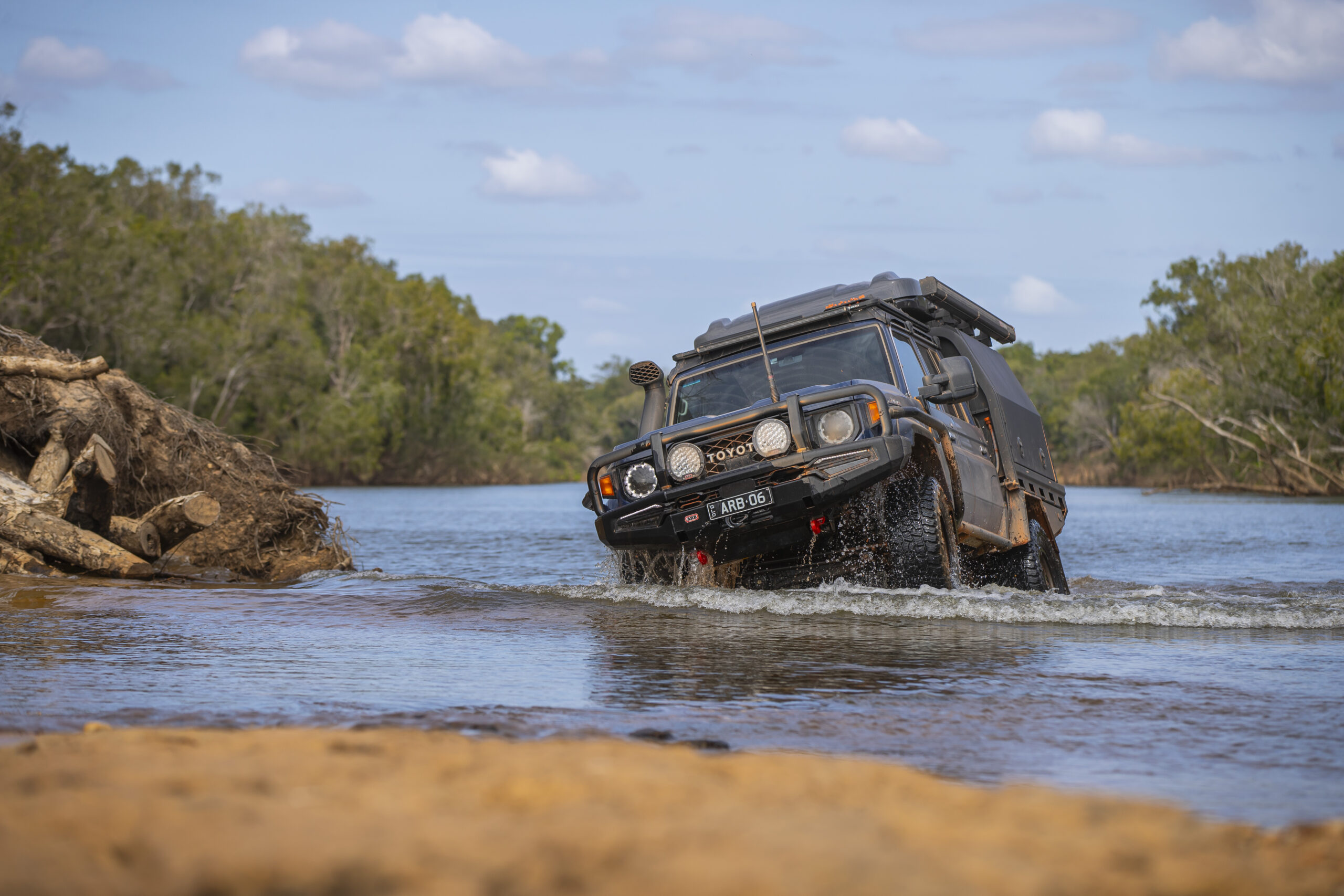 Flying into Cairns, I made my way to the ARB store, a sight to behold for most overlanders, with its showroom packed with travel and 4WD accessories, and an entire shop to install them all. Back in the garage, four fully built ARB project vehicles, including a 79-Series Land Cruiser, a 200-Series Land Cruiser, a HiLux, and a Ford Ranger awaited. All were lifted and ready to take on the mud and deep water of the Cape. In addition, two long-term ARB dealership owners were joining us in their classic 4WDs, which included a 105 Land Cruiser and a Jeep TJ Wrangler.