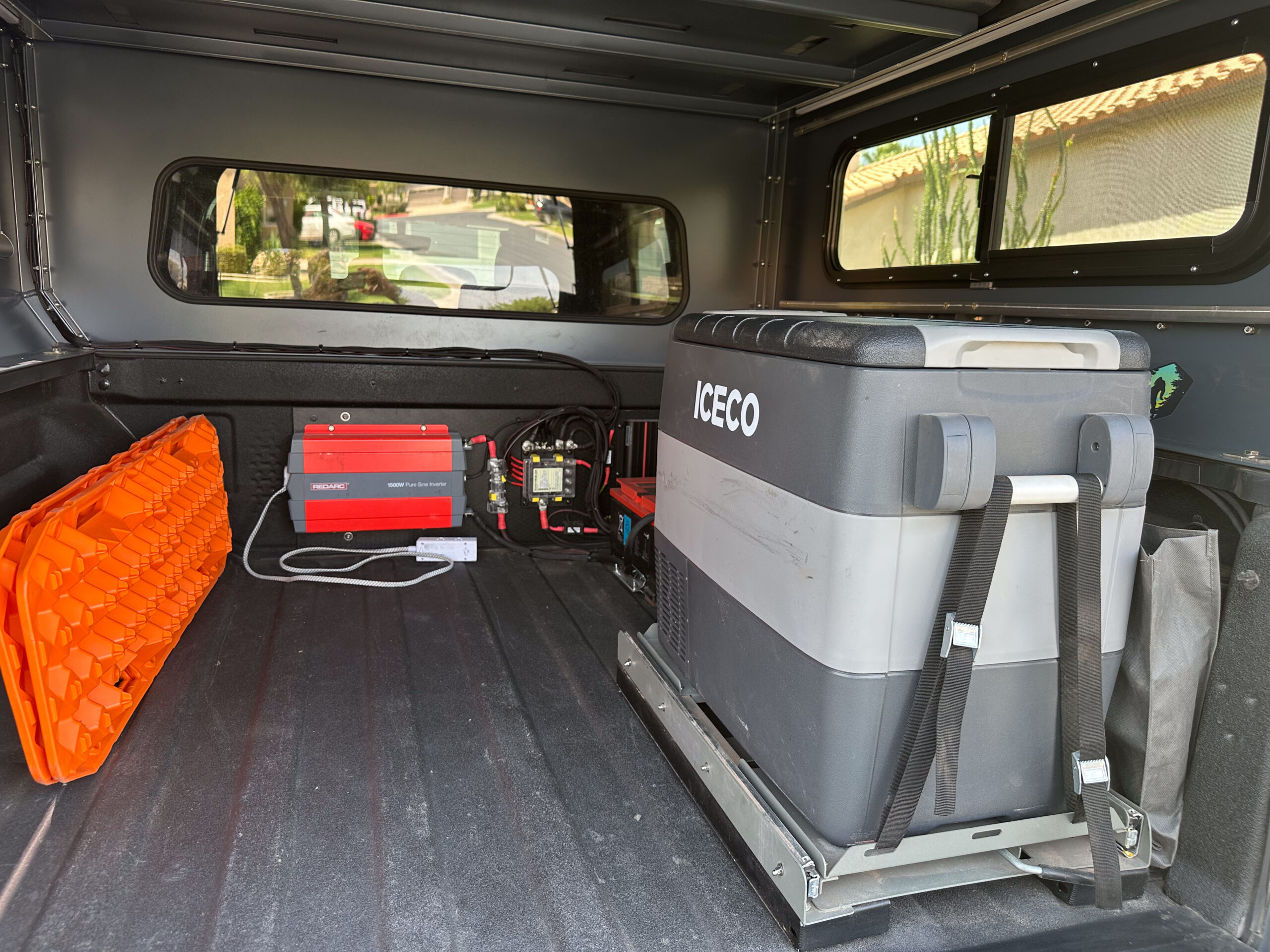 - Redarc power system with 180-amp-hour battery, 180 watts of solar, 1,500-watt inverter, and BCDC charger