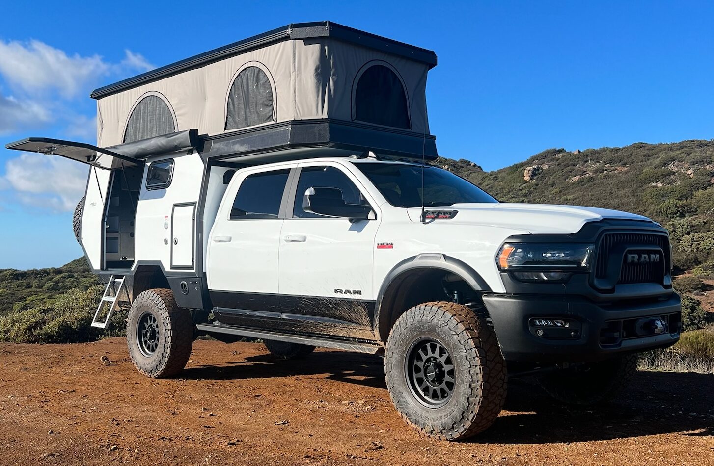 “I live in the Desert Southwest, and I built this rig to be capable of traveling rough trails from Colorado to Baja and to visit remote spots in comfort. The chassis is a plush 2022 Ram Power Wagon, which is a fully loaded Level 3 truck with every option except a sunroof. It boasts a full suspension system from Don Thuren, featuring 2.5-inch King Reservoir shocks, as well as Dethloff skids, a steering box brace with rock rails, and more. Needless to say, this rig is exceptionally trail-worthy considering its size. The camper is built unbelievably well by Leif Stein and wants for nothing. It’s so nice to arrive at camp with hot water and ice in the freezer. There is too much to list, so contact me for more info.”