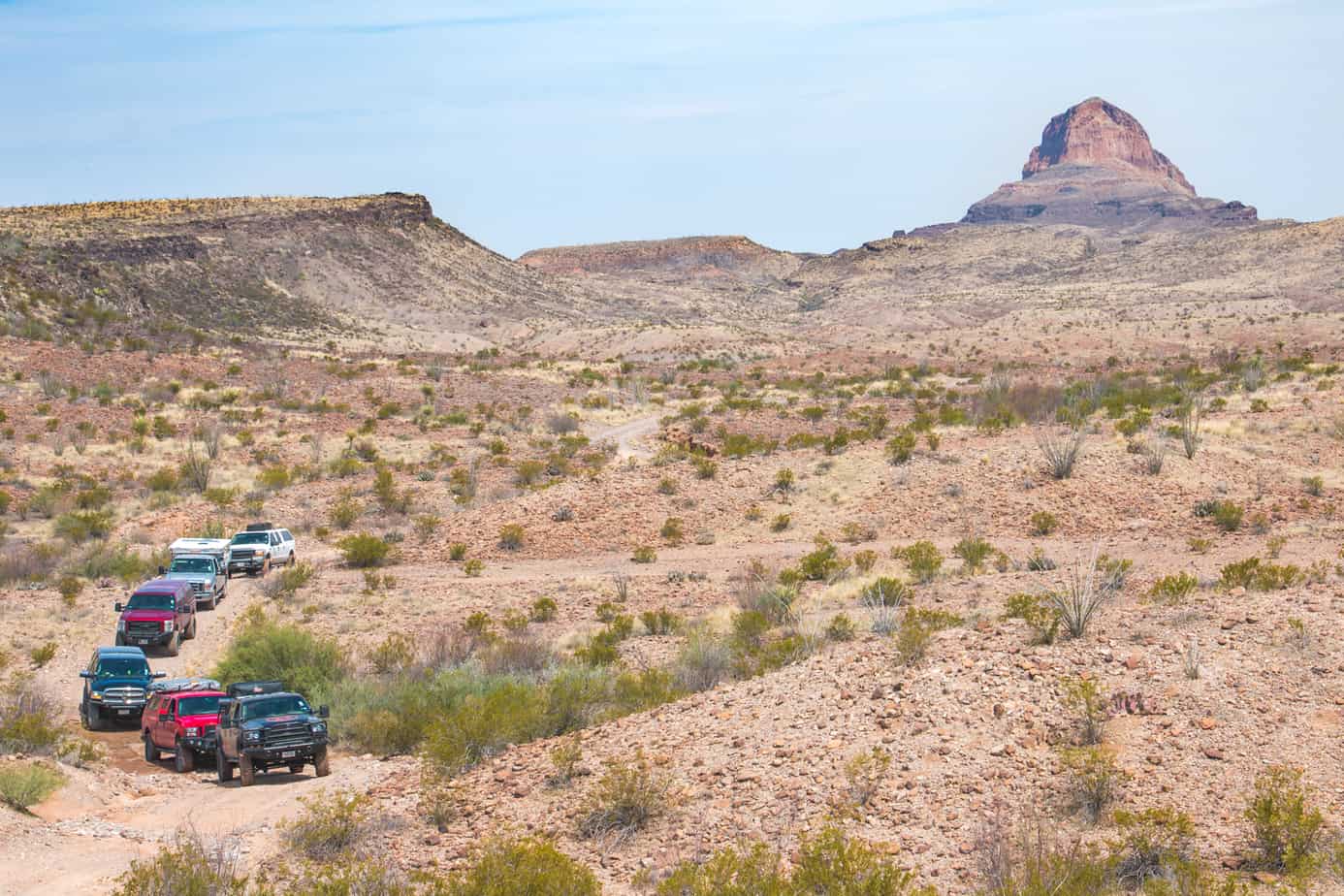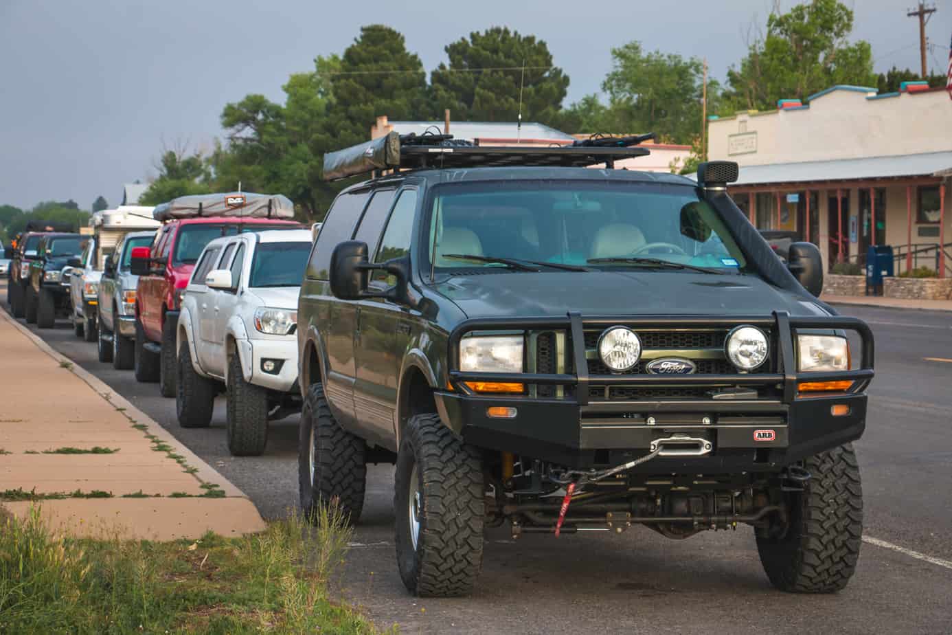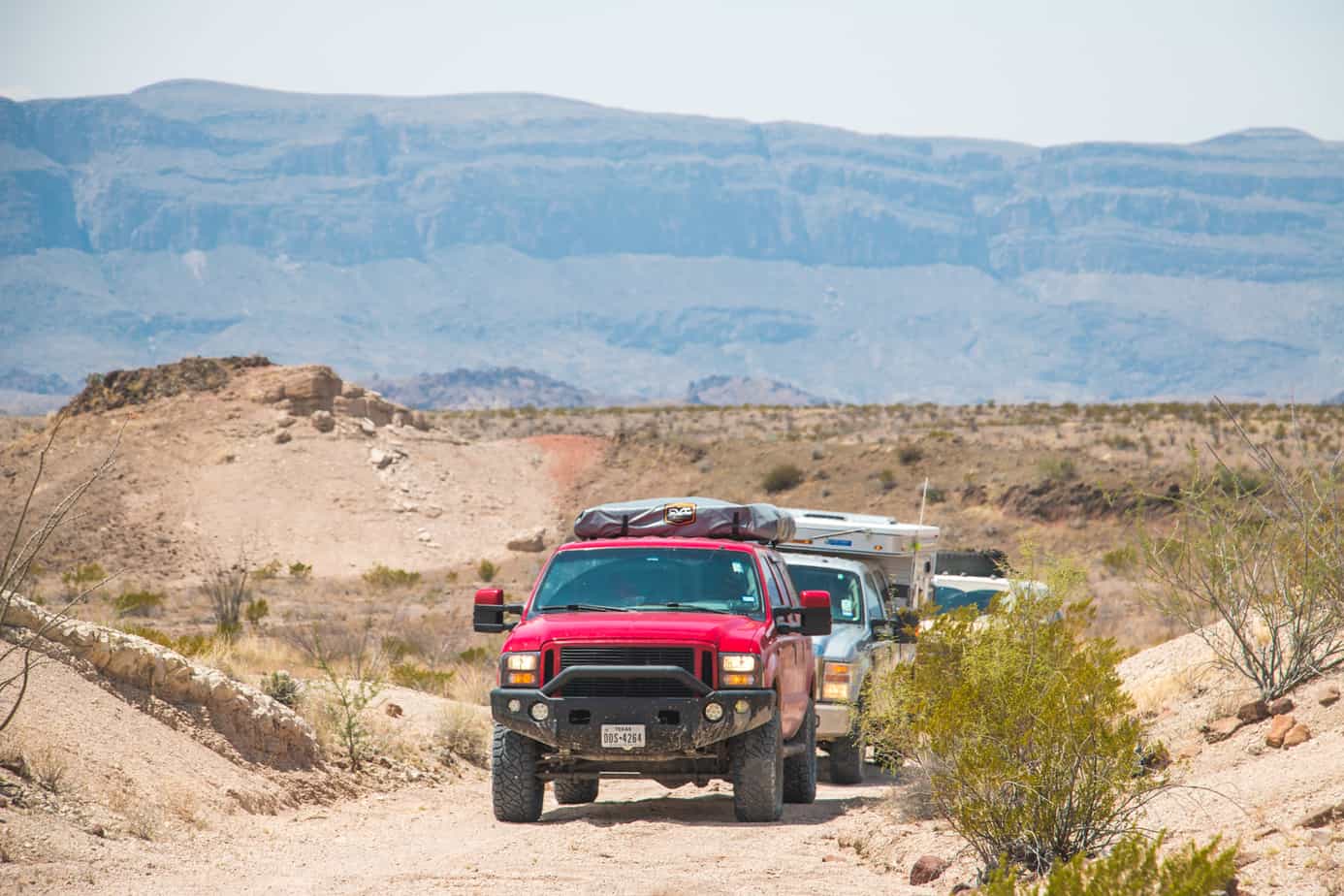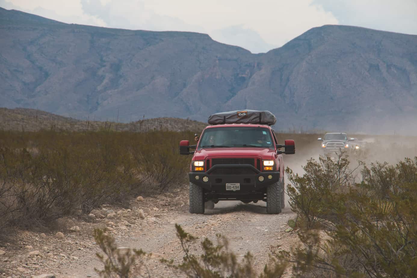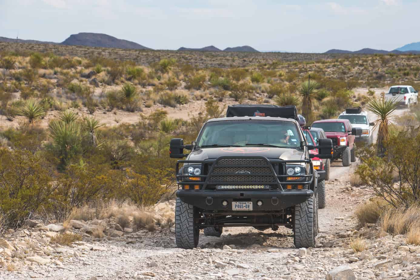 My cheap radio crackled to life, and an almost inaudible voice came over the speaker. “Are they from our group?” Two lifted trucks were parked at the fuel station, one sporting an aftermarket bumper and winch, and the other with a light bar on the roof. “I honestly can’t tell, but they could be.” In any other part of the world, it would have been easy to distinguish a gathering of full-size overland vehicles from the locals, but we were in Texas, a state that accounts for 20 percent of all pickup sales in the United States. As you can imagine, that made our task a little more difficult. Instead of stopping to ask half the town if they were there for the event, we decided to proceed to our campsite just outside the Marathon Motel.
