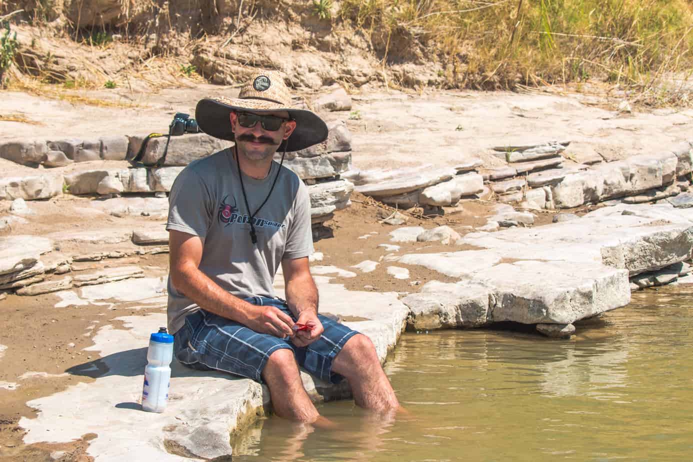 Our first stop would now be the historic hot springs district, a former homestead and resort developed by the Langford family in the early 1900s. While the area contains petroglyphs and some very cool buildings, most people visit it to soak in the remnants of the Langford bathhouse, which pumps in hot water from the natural spring. Given the sweltering temperatures of the day though, we were more interested in a dip along the border. I set down the camera on the shore and let the cool waters of the Rio Grande rush over me, enjoying the notion that one country lay a few yards to my right, while another was just a few yards to the left.