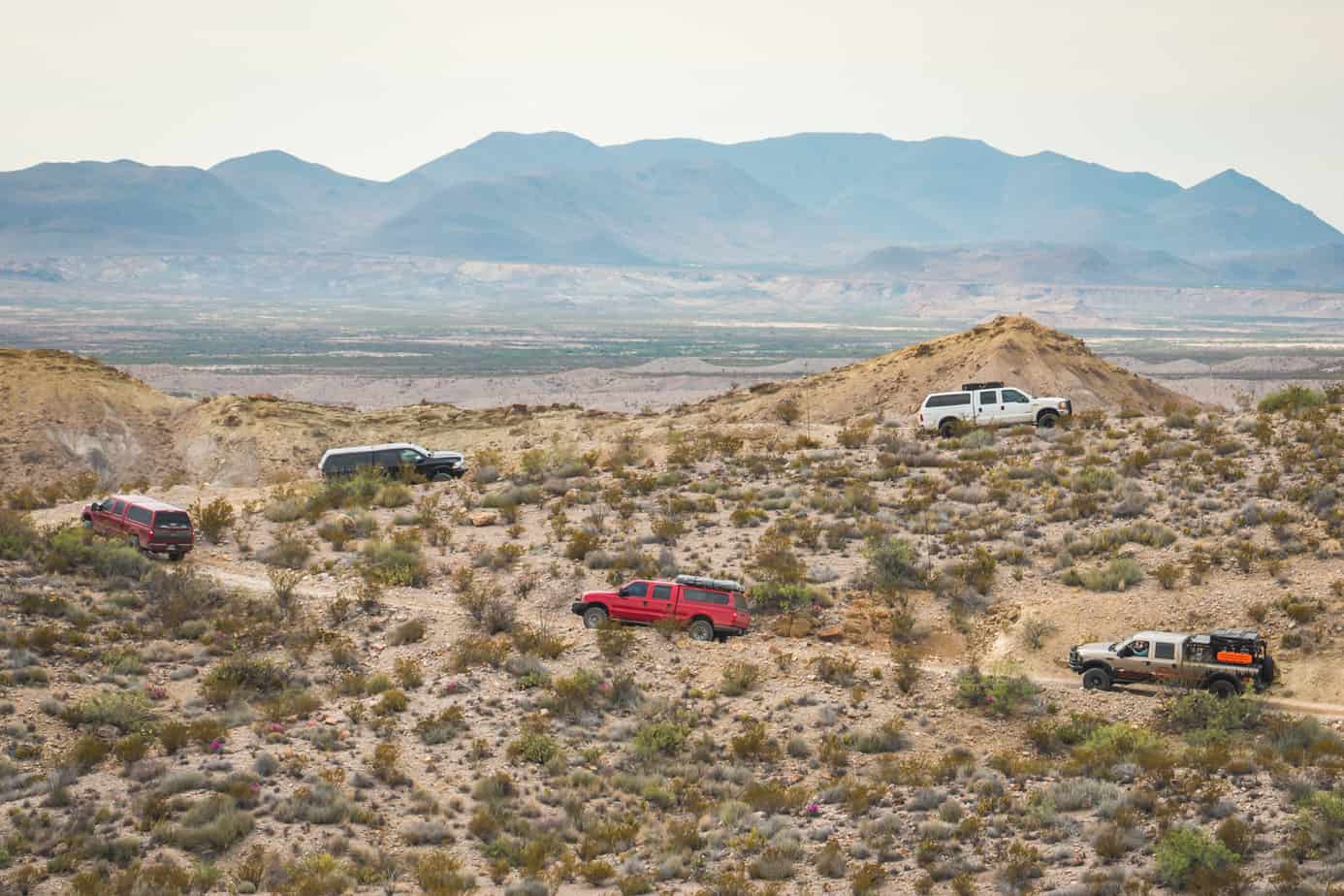 For those who haven’t visited before, Marathon is a small town situated just north of Big Bend National Park. While it’s not exactly a metropolis, it’s pretty much the last slice of civilization north of the border, making it a perfect location to fuel, stock up on supplies, and coordinate with friends before losing cell service. For all those reasons, and the cafe’s excellent breakfast burritos, we chose to make it our rendezvous point for the first-ever Diesel Incursion. The “DI” is a little event organized by PSP Diesel’s new overland outfitter division. Their goal is to bring diesel truck enthusiasts together and allow them to experience the beauty of nature and the attraction of overlanding. They kept the group small for their first trial run, but by that evening there were still seven diesel trucks parked in a row and ready for the adventure ahead. We opened the fridges, passed around beers, and started to get to know our soon-to-be friends.