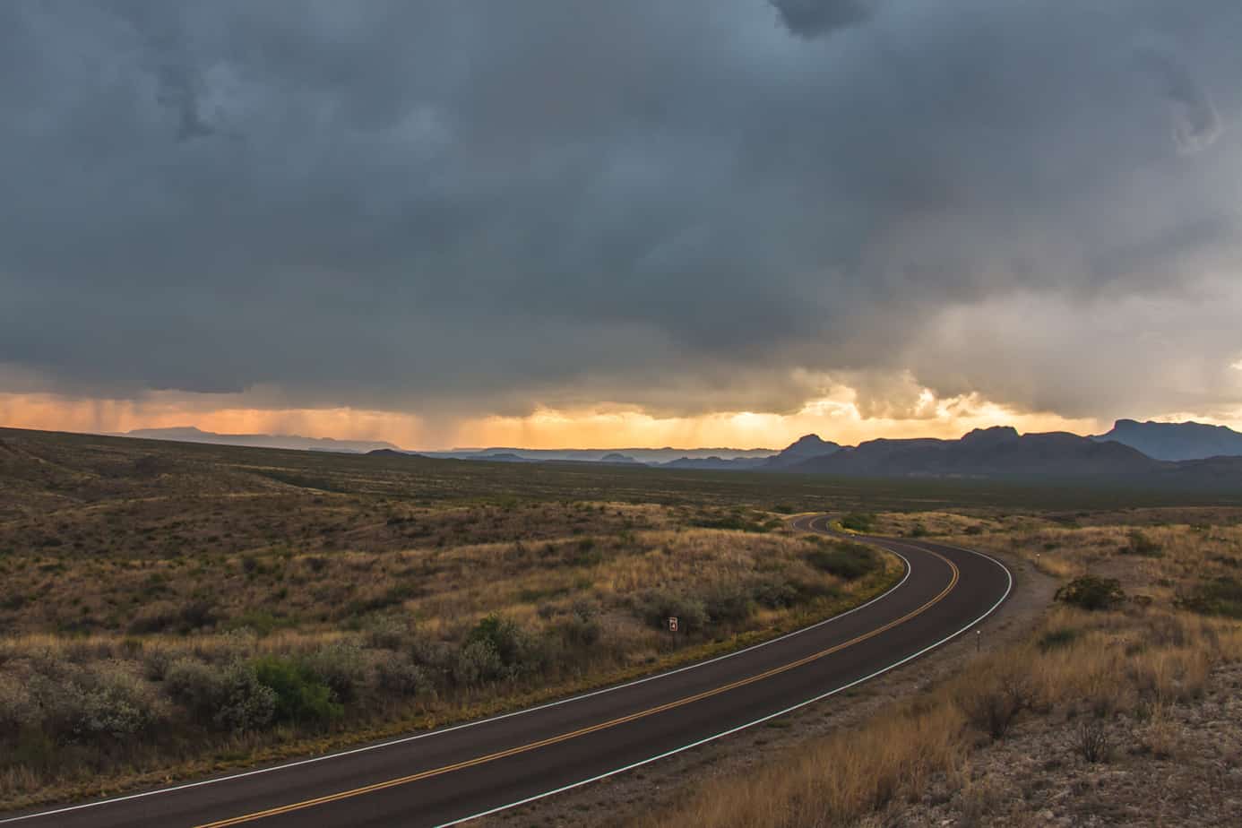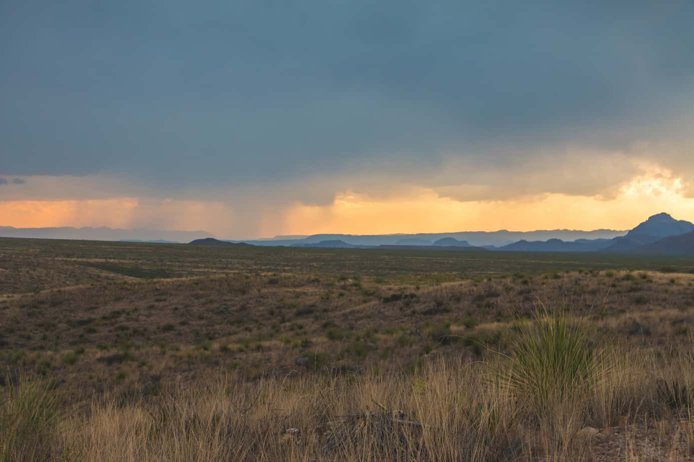 Lighting flashed outside my window, followed quickly by the low rumble of thunder in the distance. It seemed the storm had finally rolled in, and I watched as it painted the Texas sky with brief silhouettes of the Chisos mountains. Rubbing my eyes, I checked my watch. It was just after 1:00 a.m. and the wind was starting to pick up. I laid back down and listened to the patter of rain on the roof. I’ve always liked rain when camping; it’s calming, almost cozy in your tent or vehicle. The steady rhythm had just started to lull me back to sleep when a distinct clack echoed off the windshield. No. Another clack, then another—please no. I shot back up and looked outside. Hail. The cracking and popping from the impacts on our trucks grew louder, and soon the sound of ice on metal was deafening. I stared out the window cringing with every hit on the hood. With no cover nearby and no way to shield the truck, I resigned myself to listening to music and drowning out the noise.