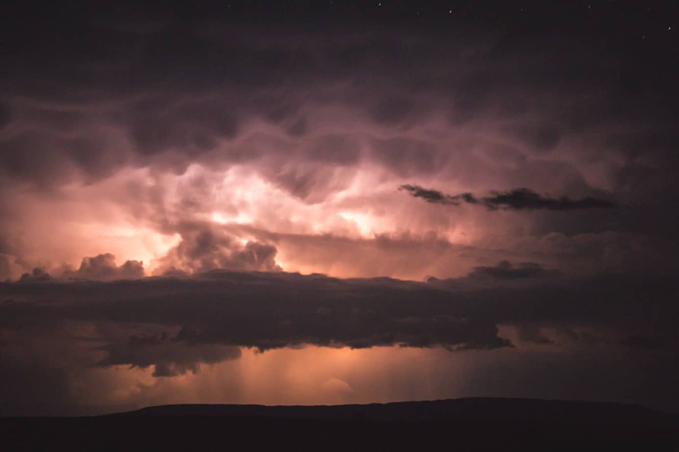 Between cooking dinner, swapping stories, and laughing about the events of the day, evening set in quickly. The sun burned in magnificent hues of oranges and yellows to the west, while dense clouds to the east promised to make it a very interesting night. We cranked up the propane fire, opened a beer, and did the only thing we could do: wait.