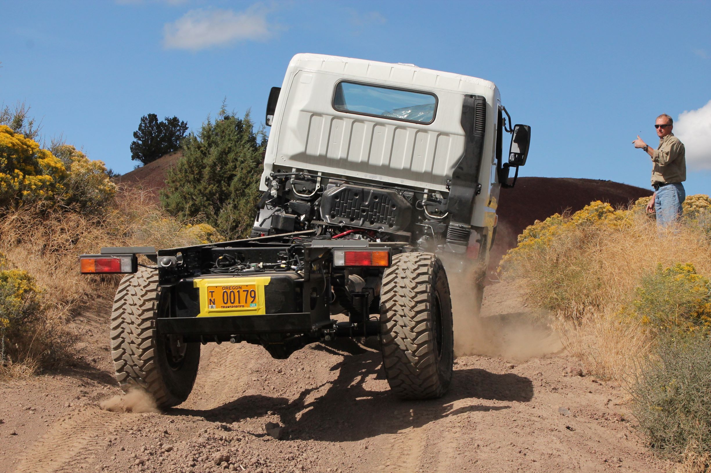 Lance Gillies is the mastermind behind the 4WD requirements of the new CORE system. Listen to the Overland Journal Podcast featuring Lance and his global travels. Method wheels, removal of the rear dual wheels, and Toyo 37-inch tires define the rolling chassis.