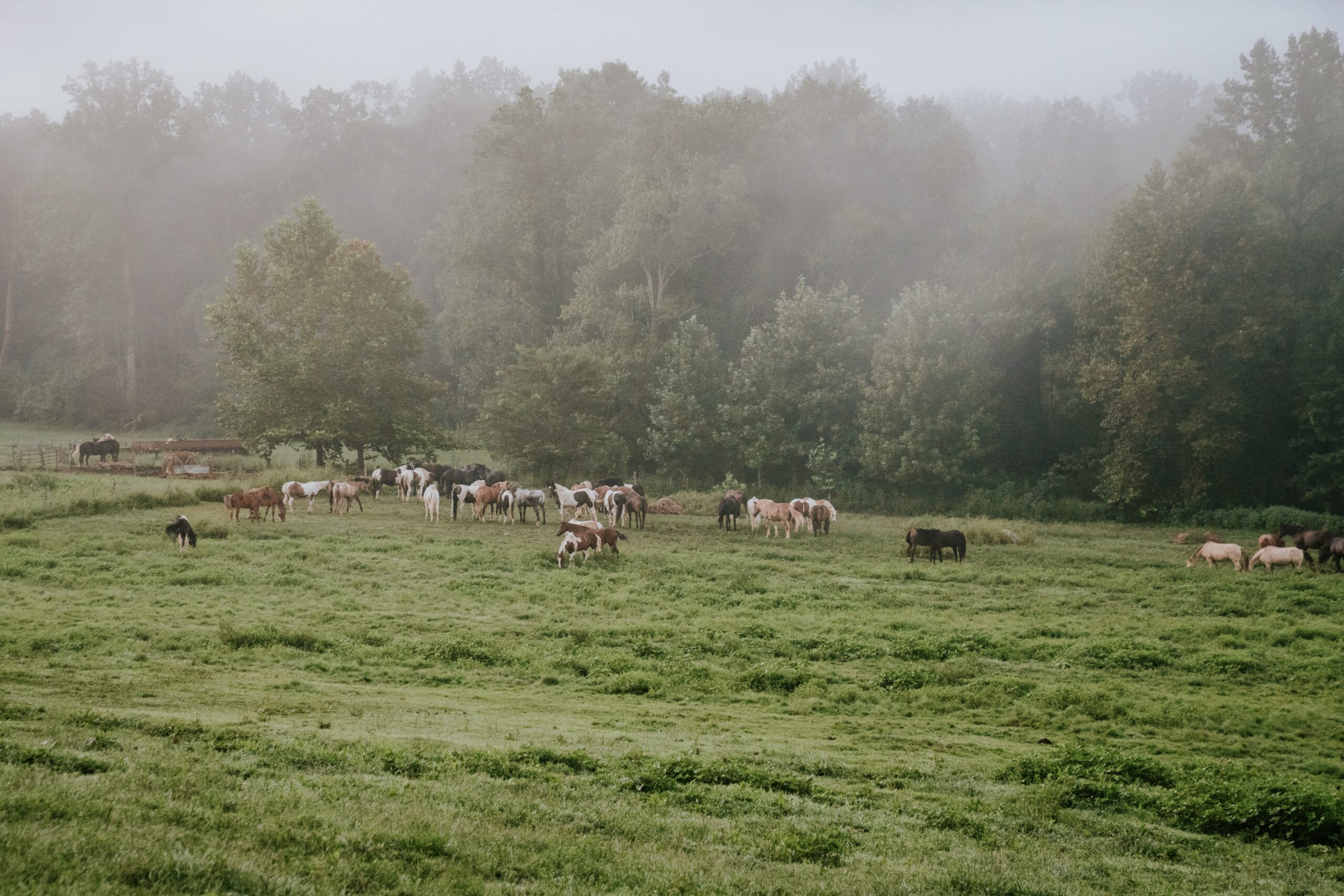 Less than an hour from Pigeon Forge, we found ourselves in Townsend, Tennessee, at the entrance to Great Smoky Mountains National Park. Once in the park, we arrived at our first adventure, the Cades Cove Loop Road, where we waited for the park ranger to open the gate at sunrise. The air was filled with silence and heavy with mist. Clouds of fog hovered low over broad pastures filled with horses, deer, and wild turkeys. The road through Cades Cove is a slow and tight single lane; traffic flows one way for 11 miles.