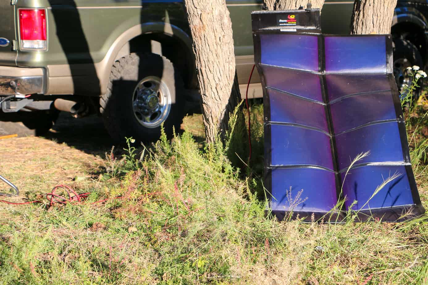 In order to ensure the most accurate test results and eliminate differences caused by aftermarket components and wiring, we opted for Flexopower’s ready to go complete camping kit, which includes the 79 Watt foldable panel, a solar regulator with LCD display, a carry bag, Anderson connectors, 33 feet of cable to run the panel away from the vehicle, and of course all the necessary connectors and hardware for installation. All of this will set you back $772.00 U.S., but you won’t have to purchase a thing after the fact. Tests were conducted in a variety of conditions including full sun, cloud cover, and partial shading, and in all situations the panel lay flat on the ground. The load placed on the vehicle was a National Luna 50L fridge/freezer which we opened multiple times a day, and stocked with a warm six pack of soda, cold meats and cheeses, and a gallon of warm sweet tea. To test the claim that this solar panel could replace a dual battery system, we used it on our stock Excursion which at this time is running on a factory spec battery system.