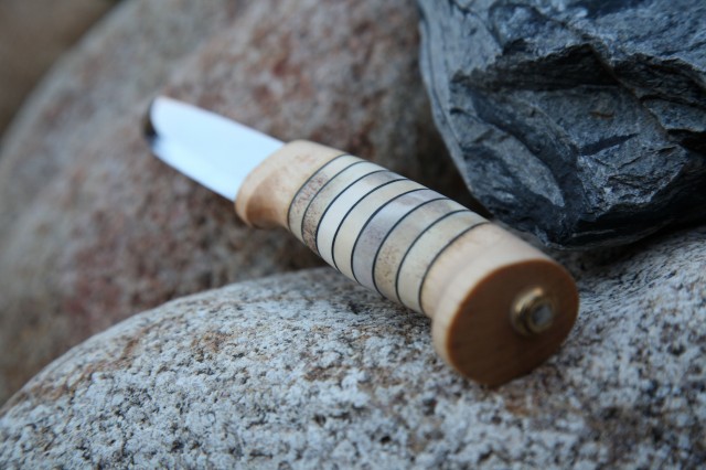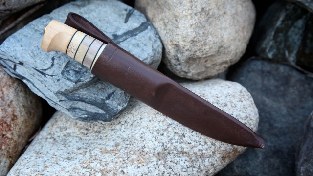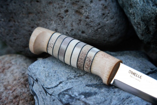 The hallmark of a Helle knife is the triple laminated stainless steel blade. The core is comprised of a hard alloy steel that holds an edge better than most metals. The outer stainless layers protect the core steel from rusting or breaking. The result is a knife blade with a stunningly beautiful appearance, but with the utility of a proper field knife. As the Helle craftsmen say, these are heirloom quality knives, but intended to be used.