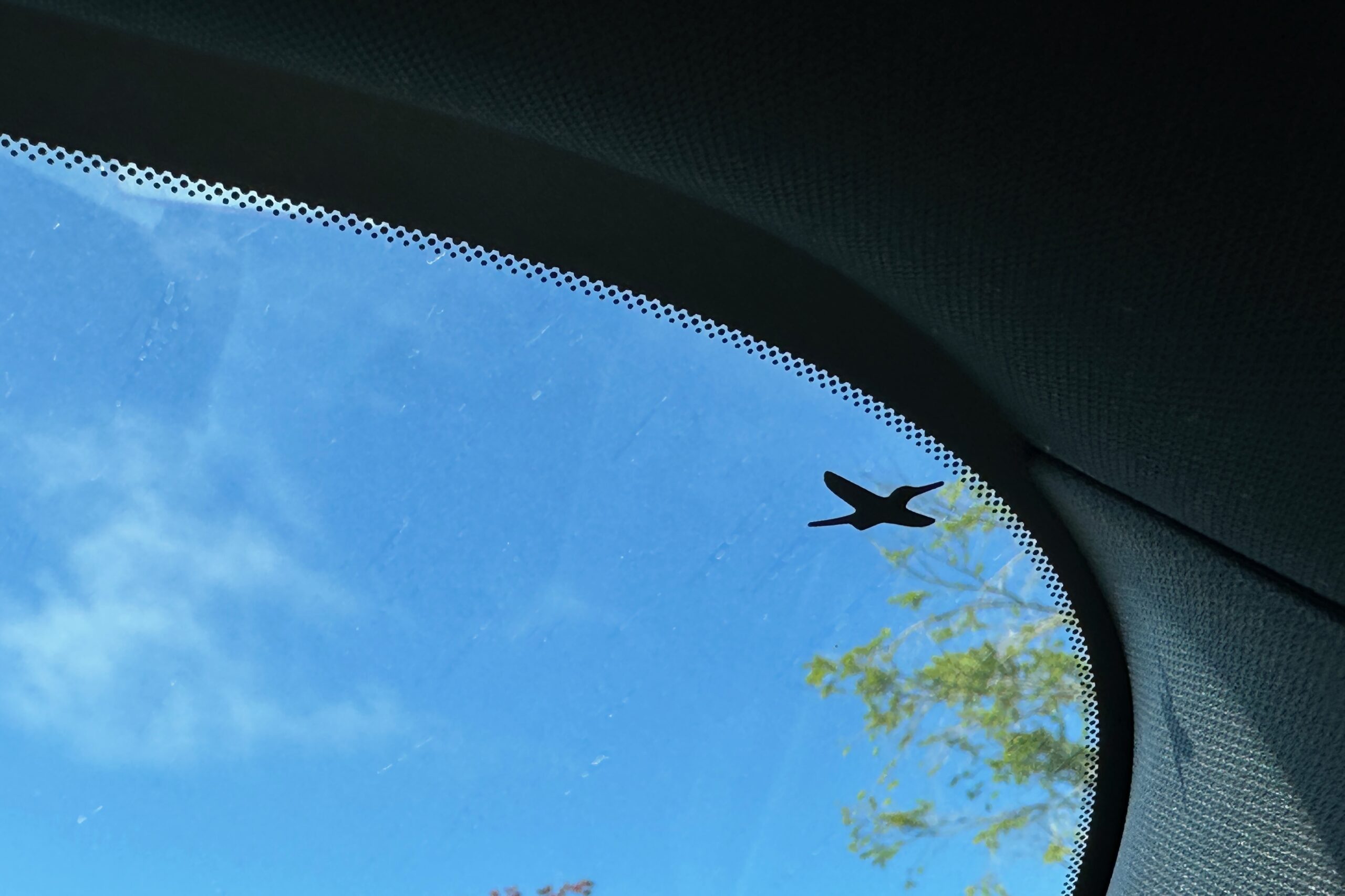 Inside, the hexagons reappear on the dash panels, and the copper accents continue on the door card and seat stitching, and on the steering wheel and shift lever for the CVT. The Forester Wilderness also features excellent grey StarTex upholstery that’s water-resistant, pet damage-resistant, and journalist pen ink-resistant. This soft-touch fabric alone is worth upgrading to the Wilderness—it somehow feels like a premium interior appointment, while simultaneously being tough-as-nails. The standard rubber floor mats and cargo liner enhance the all-conditions usability of the interior, and there are some whimsical design touches, like the topo map contour lines and hiking boot prints molded into the cargo tray, and the small hummingbird decal flitting across the top of the windshield. The huge power moonroof is best-in-class.