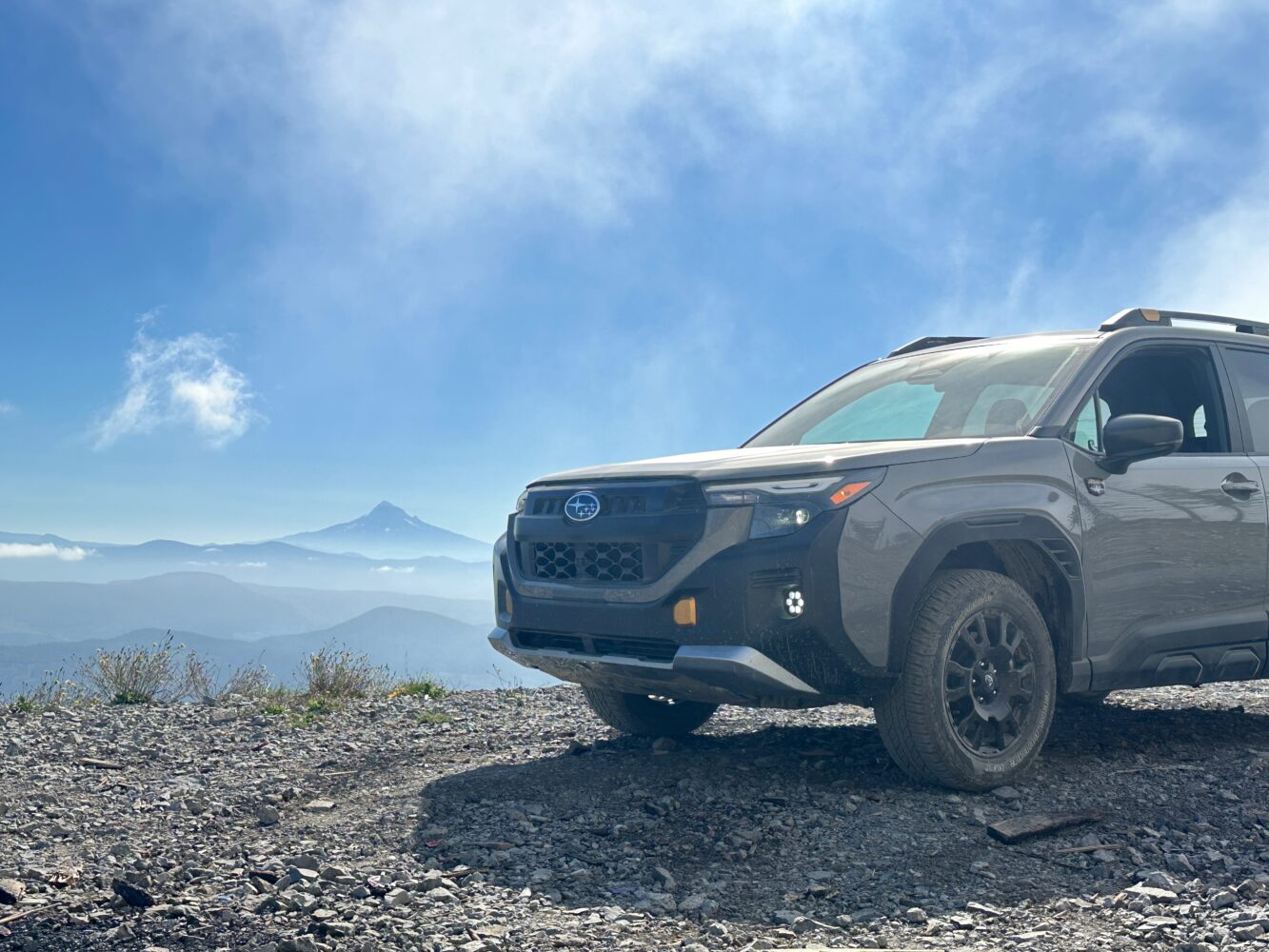 The direct-fuel injection flat-four does sit low in the engine bay, keeping the center of gravity low as well. With the standard symmetrical all-wheel drive system that one expects from a Subaru, the Forester Wilderness felt planted on the winding rural highways that rise from the Columbia River onto the benchlands and volcanic slopes of southern Washington mountain ranges. On first drives, Subaru always treats journalists to engaging and genuinely challenging driving routes, both on tarmac and off. There’s very little hand-holding, mostly a route book and a hearty good luck, which means doing things like this: