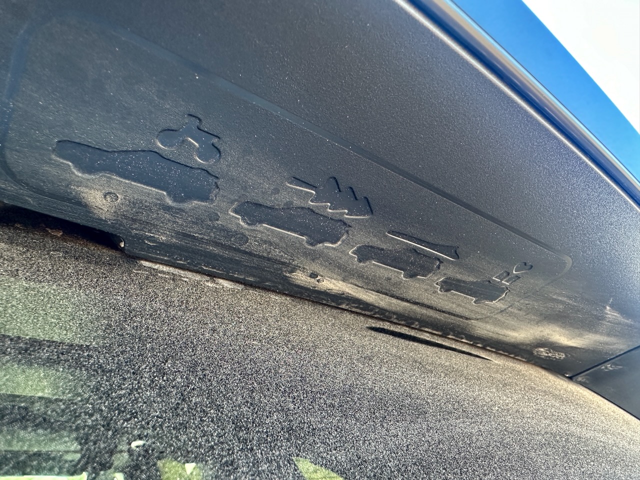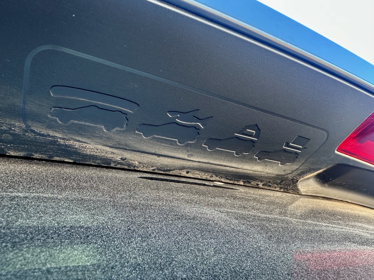 LED fog lights anchor the much more vertical lighting stacks in the nose, which pump up the look of the flat hood, upright grills, and the boxier side profile. Subaru equips turbocharged XT models with 19-inch wheels, either black or machine-finished, over the 18-inch rims on the standard cars. A few Easter eggs can be found here and there, including on the underside of the rear hatch spoiler. Small Outback icons display a range of items one might lash to the roof, including a roof tent and what whimsically looks like a great white shark. Another is the stylized boxer engine logo on a trim panel under the hood, reading “Since 1966” in both English and Kanji.