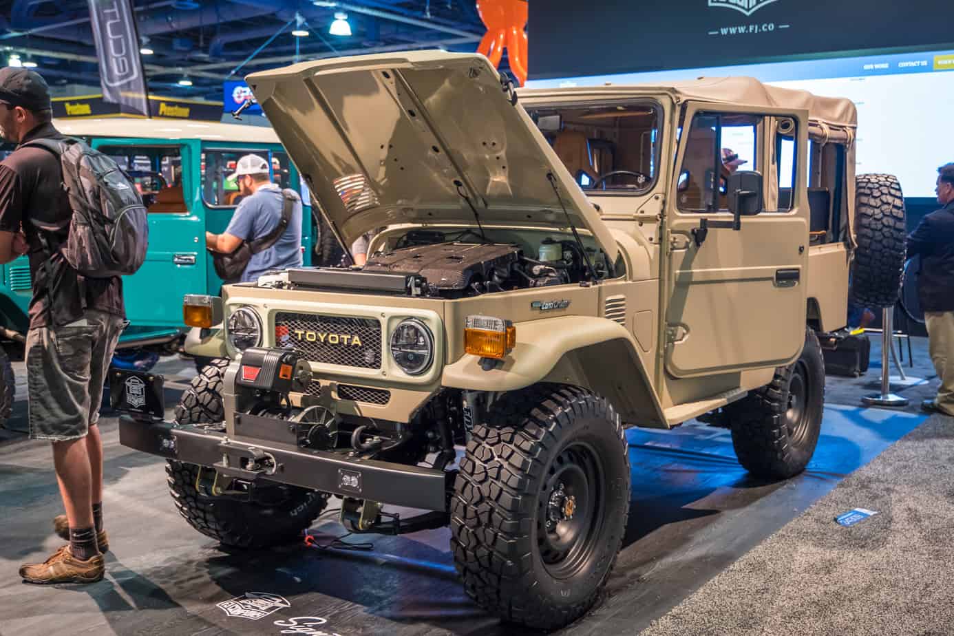 While there are certainly some less than stellar builds at SEMA this year, there are also plenty of good ones, and it seems like at least half of those are painted in tan.  We don’t know who started this trend, but we like it. From off-road classics like the FJ40, to 4Runners, Jeeps, and even a VW Atlas, this simple combo of tan paint with black accents is a refreshing sight amidst the flash and flare of other vehicles.
