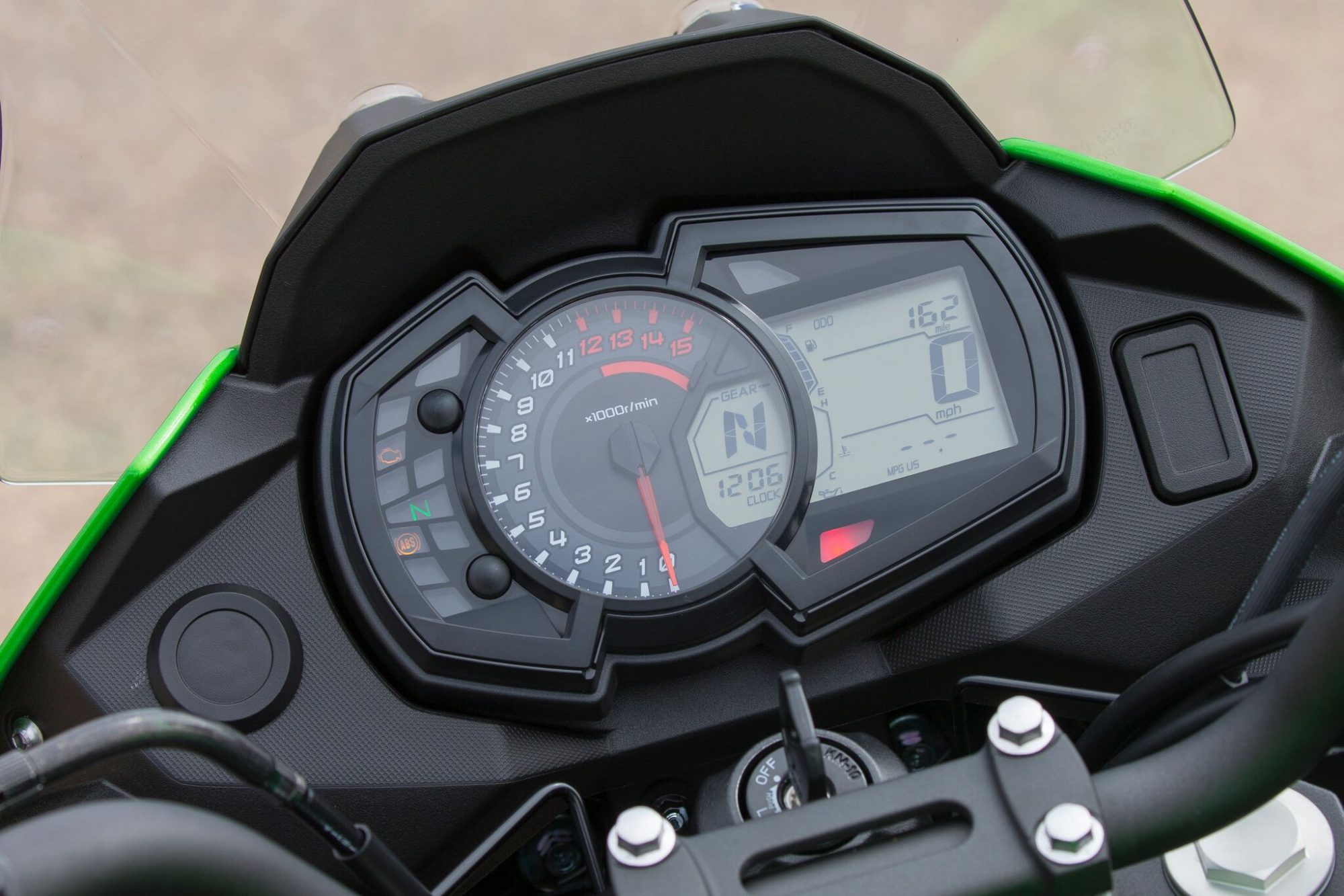 Other fine finishing details include a digital dash with a compliment of useful readouts for fuel burn efficiency as well as a large gear indicator and oversized tachometer. The tach made for fun spectating with useful power registering at 4,000 rpm and extending all the way to near redline at 10,000. More than just volume control, the bike accelerates through that entire sweep of rpm.