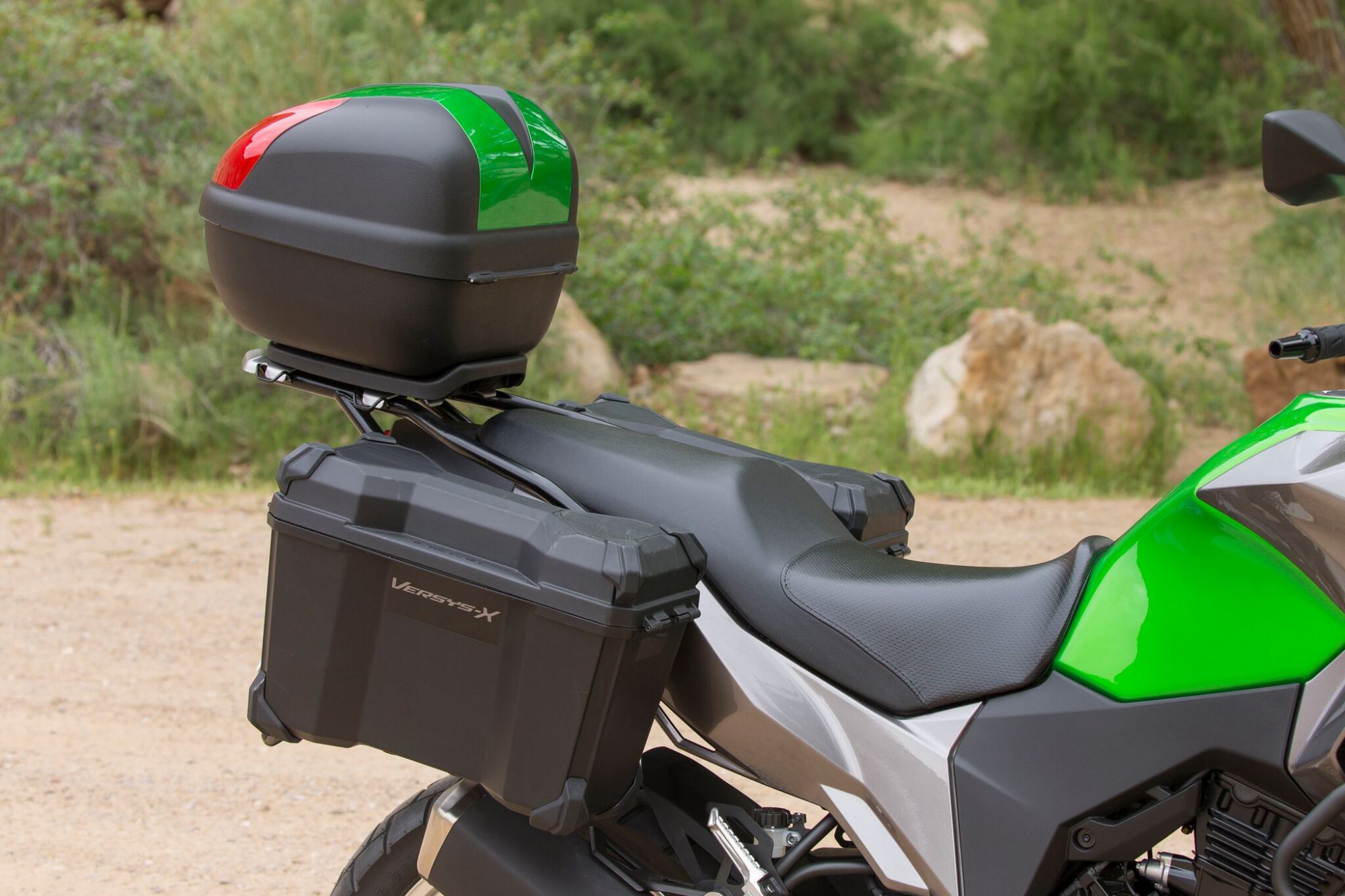 I can also see one additional factor playing heavily into the eventual X 300 buyer: the price. At only $5,399 for the base model, just $300 more for the ABS-equipped bike, this is one of the best values in motorcycle offerings. For those prone to go big, Kawasaki offers a comprehensive line of accessories including hand guards, crash bars,  top case, accessory lights, upgraded saddle, center stand, 12V outlet, and even hard case panniers. That entire add-on kit only increases the price by $2,000. Better yet, all of those accessories, including the crash bars, can be installed in minutes.
