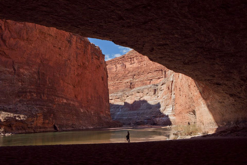 It is one of the most inaccessible wilderness areas in the United States. Forgotten by time, the mighty Colorado River meanders through the Grand Canyon exposing visitors to geological wonders beyond imagination. The Redwall Cavern is such a marvel. An alien landscape, remote beyond description, this tiny nook within the eminsity of the Grand Canyon is a contrast of scale. The sandy floor of the cavern juxtaposed against the enormous vaulted ceiling makes for a surreal experience like only the Grand Canyon can provide.