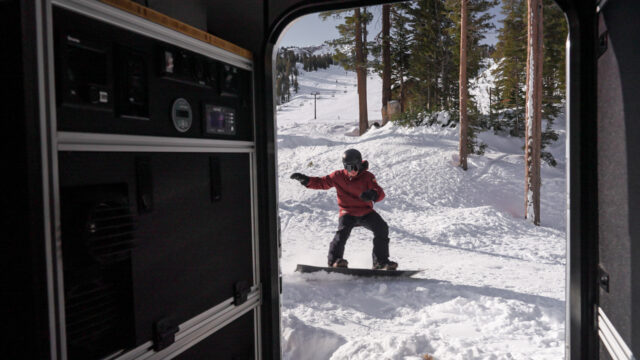 The CampOut’s versatility extends beyond its interior. Its exterior features are aimed at maximizing functionality and convenience. The camper includes multiple vertical rows of L-track and two MOLLE panels for securing gear, providing various options for stowing items safely and efficiently. A DC port is integrated for Starlink Mini, offering potential off-grid connectivity while minimizing power consumption. The exterior power panel supplies various outlets, and downlights are installed to improve visibility when setting up camp after dark. These elements are designed to accommodate the practical demands of overlanding in a range of environments.
