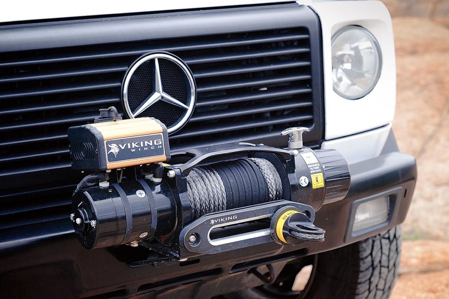 All G-Class are factory fitted with metal front bumpers, but it is possible to source a factory HD unit with an integrated tow pin. These bumpers are designed for the military 461 models, but easily install on the 463 variants as well. Bucking the trend, I did not fit a bull bar, but did purchase a removable winch tray from GWA that uses the reinforced pin and recess to secure the Viking 9,000-pound winch (manufactured by COMEUP) with Viking synthetic rope. Further back on the chassis, we mounted discrete rock rails (also from GWA) that protect the lower sill and exhaust. It does not protect from a horizontal impact, so I may fabricate round tube sliders to also function as a step and attach to the lower GWA units. Rear bumpers on the W463 are a weak link, the main structure being fiberglass and the end caps made of rubber. To resolve this, a GWA unit was selected, a product constructed from welded steel and designed to look relatively stock, even integrating factory lights and a receiver hitch. Beyond the excellent rock protection, the solution provides two 30-mm-thick recovery points welded to the face. So far, the trail modifications have enhanced the already competent stock performance; the rock protection provides additional confidence to push the platform a little further.