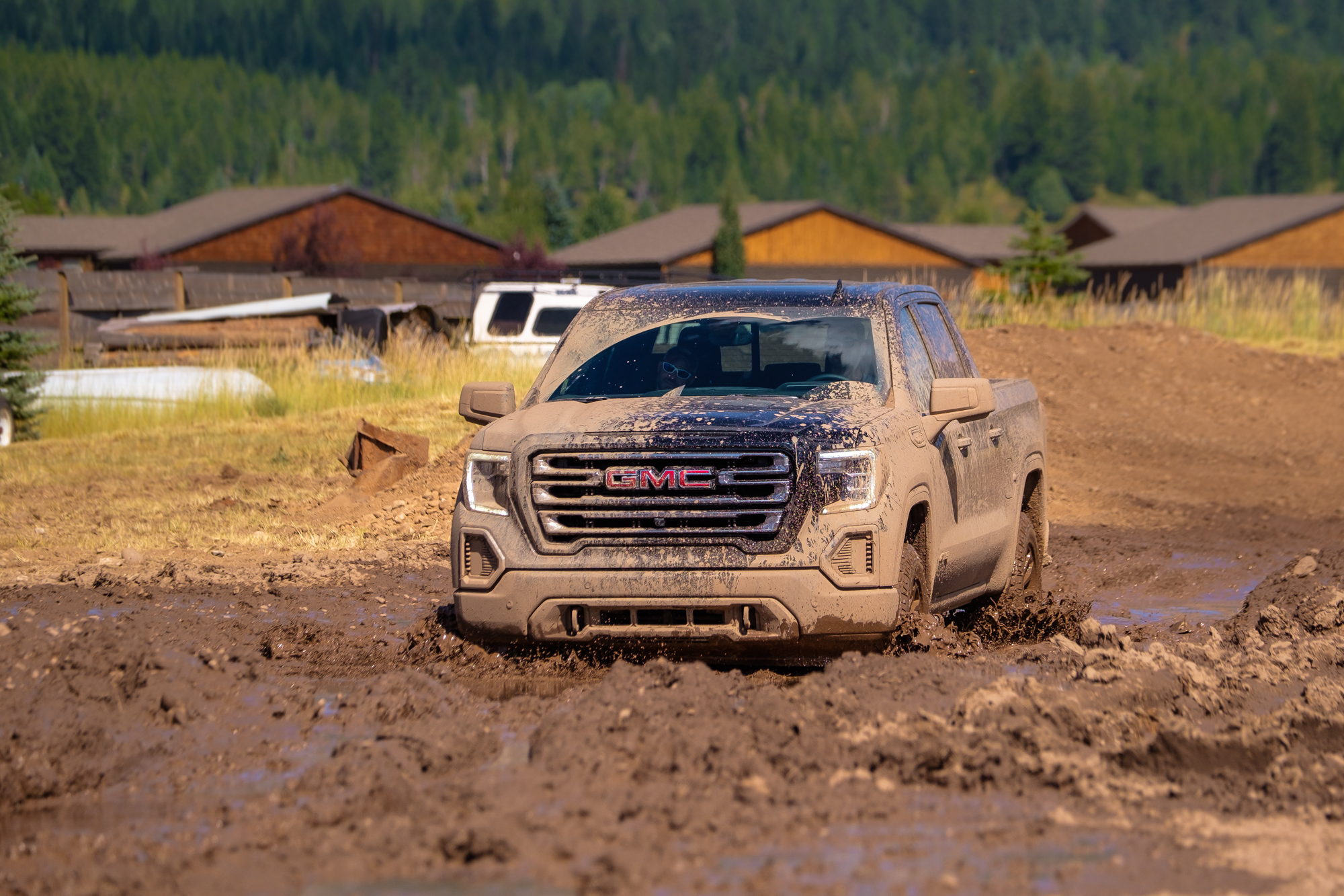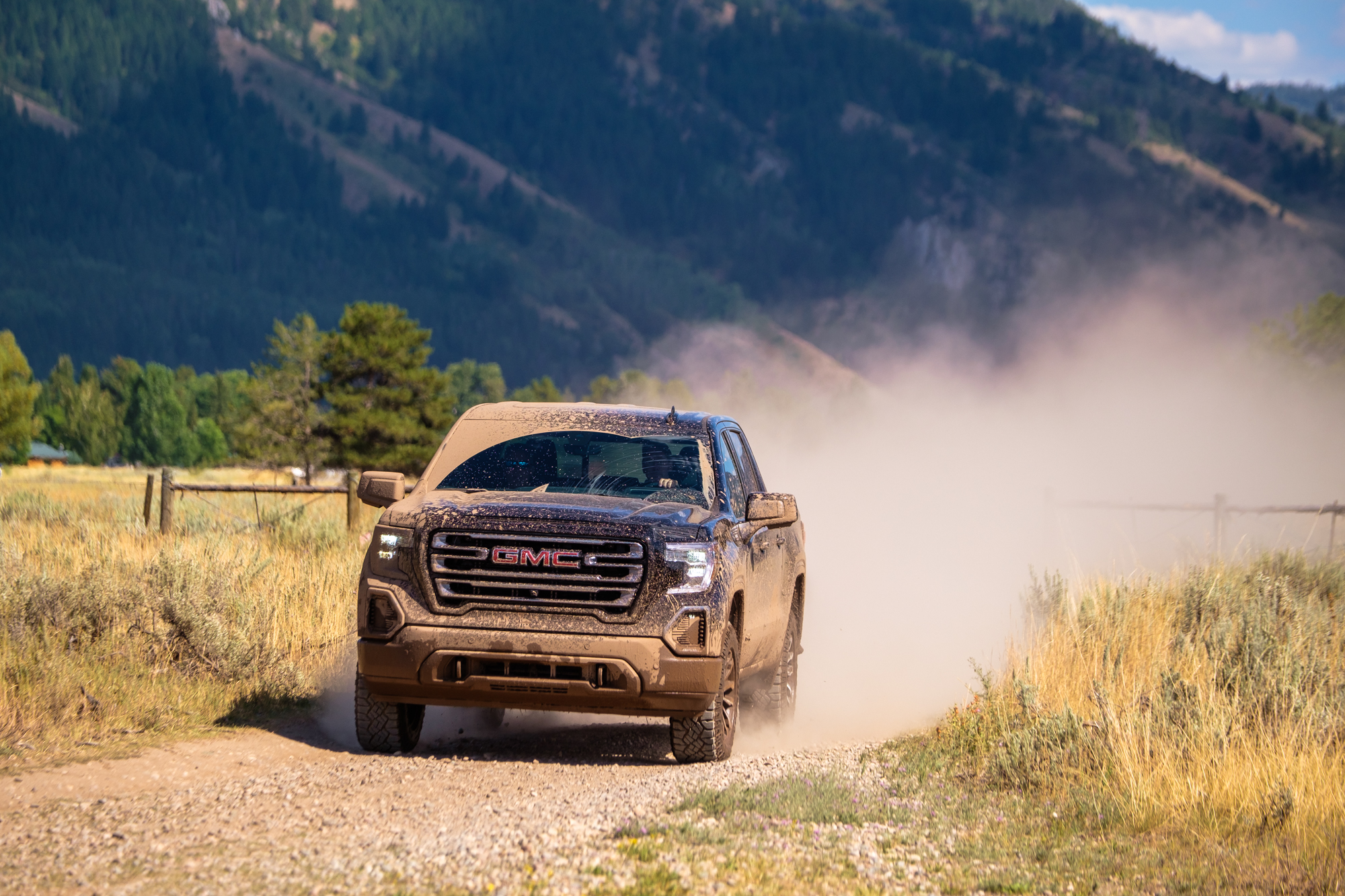 Since we were in Wyoming, we decided to open up the throttle on some dirt roads to let the 277 horsepower roam free, and were happy to discover that it felt more than adequate for the Sierras. In fact, the truck felt downright peppy. Throttle response was smooth too, with nearly seamless shifts from the 10-speed transmission, making it easy to control the truck on loose surfaces where it wanted to break free. Of course, letting it break free was a constantly tempting proposition. While the roar of the 6.2L may be absent with this motor, the truck’s fun demeanor certainly isn’t.
