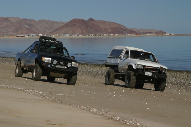 The Baja desert came alive as the sun crested the Sea of Cortez, casting radiant hues of yellow, orange, and magenta across the rugged Sierra San Pedro Martir Mountains. I was pouring my second cup of coffee when I noticed Randy popping open his second Bud Light, cracking a wicked grin as he inverted the can against his lips. For the record, bringing beer to Baja is just plain wrong, sacrilegious, and immoral. And Bud Light? Baja is all about cold Corona, Dos Equis, Pacifico, and fine añejo. Still in his sleeping bag, he sat there drinking and grinning….but that’s just Randy. Packing up early, we hit the playa, and blasted south, three vehicles abreast in search of the next two-track; we might even find a race if we didn’t run out of beer.