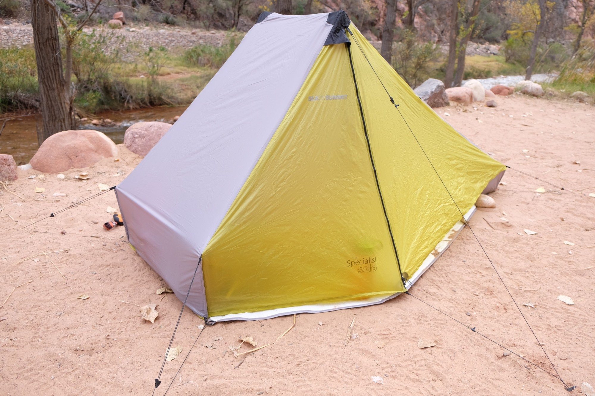 This Sea to Summit Specialist Solo tent packs down to a bundle smaller than a water bottle.
