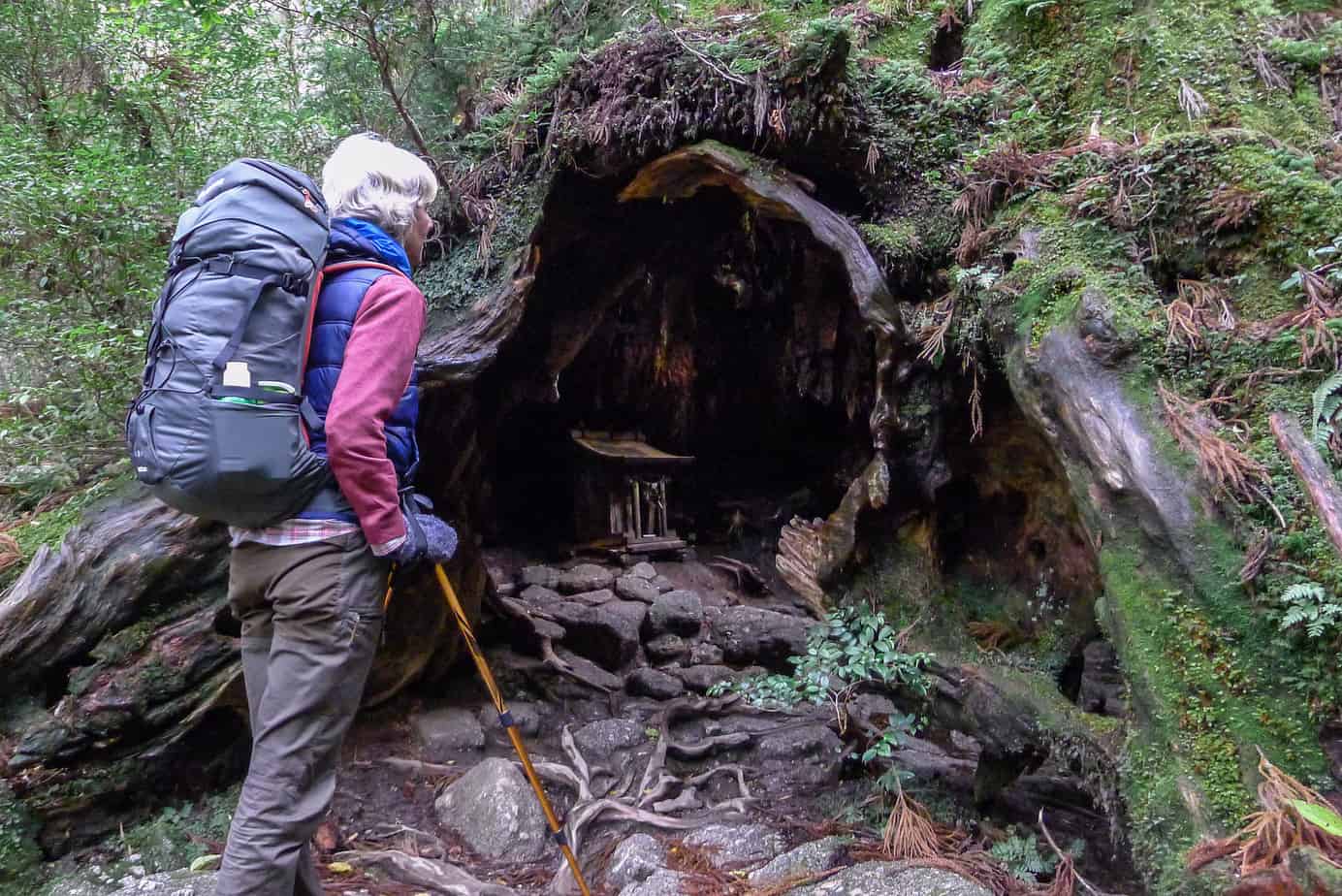 “Here you have to get off,” the bus driver indicated. We took out our walking sticks, hoisted our backpacks and headed for the trail, excited to find out what lay ahead of us. Within a couple of minutes we were engulfed by the forest. Most of the primary forest had been cut in the 18th and 19th centuries and been replaced by secondary forest, but a few trees had survived the onslaught. The handful of Yagoi-sugi cedars, hundreds of years old, were humongous and demanded respect. The trail, sometimes provided with stairs built of wood, cut through the vegetation. It wove around trees, wide, heavy, aerial roots, and vines and boulders covered in moss. With the afternoon light filtering through the foliage, the terrain and atmosphere created a fairy-tale kind of forest—inviting, innocent, beautiful, yet with a who-knows-what’s-behind-that-corner feel, like in a Lord of the Rings movie. Even though most trees were young the landscape felt old and magical. The density of the forest demanded the trees to work hard to survive. To reach the sun, many were twisted in the weirdest shapes with trunks and roots intertwining, or one trunk splitting into multiple trees.