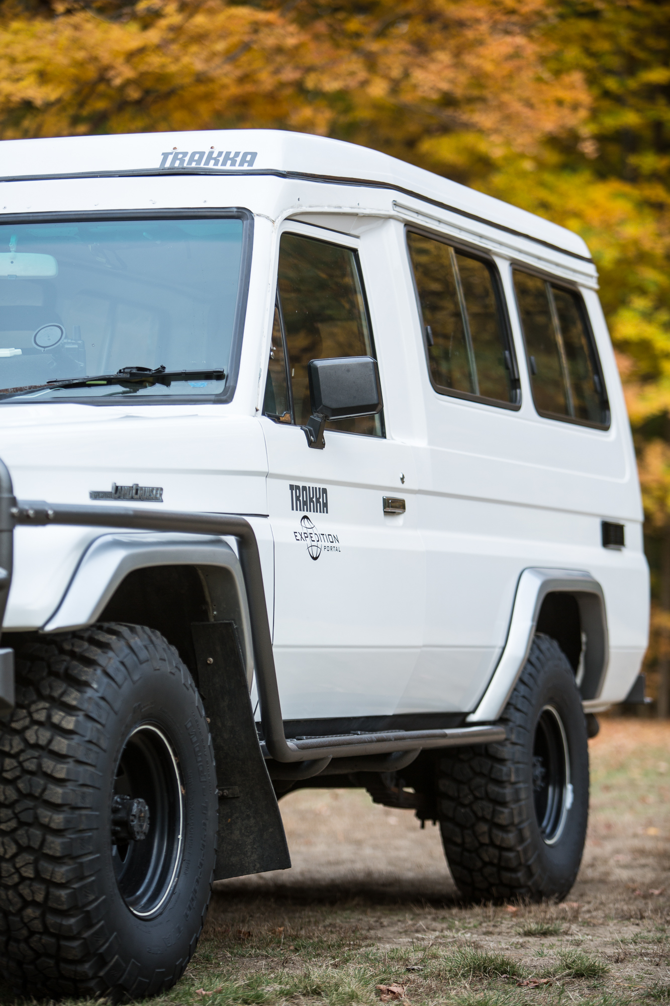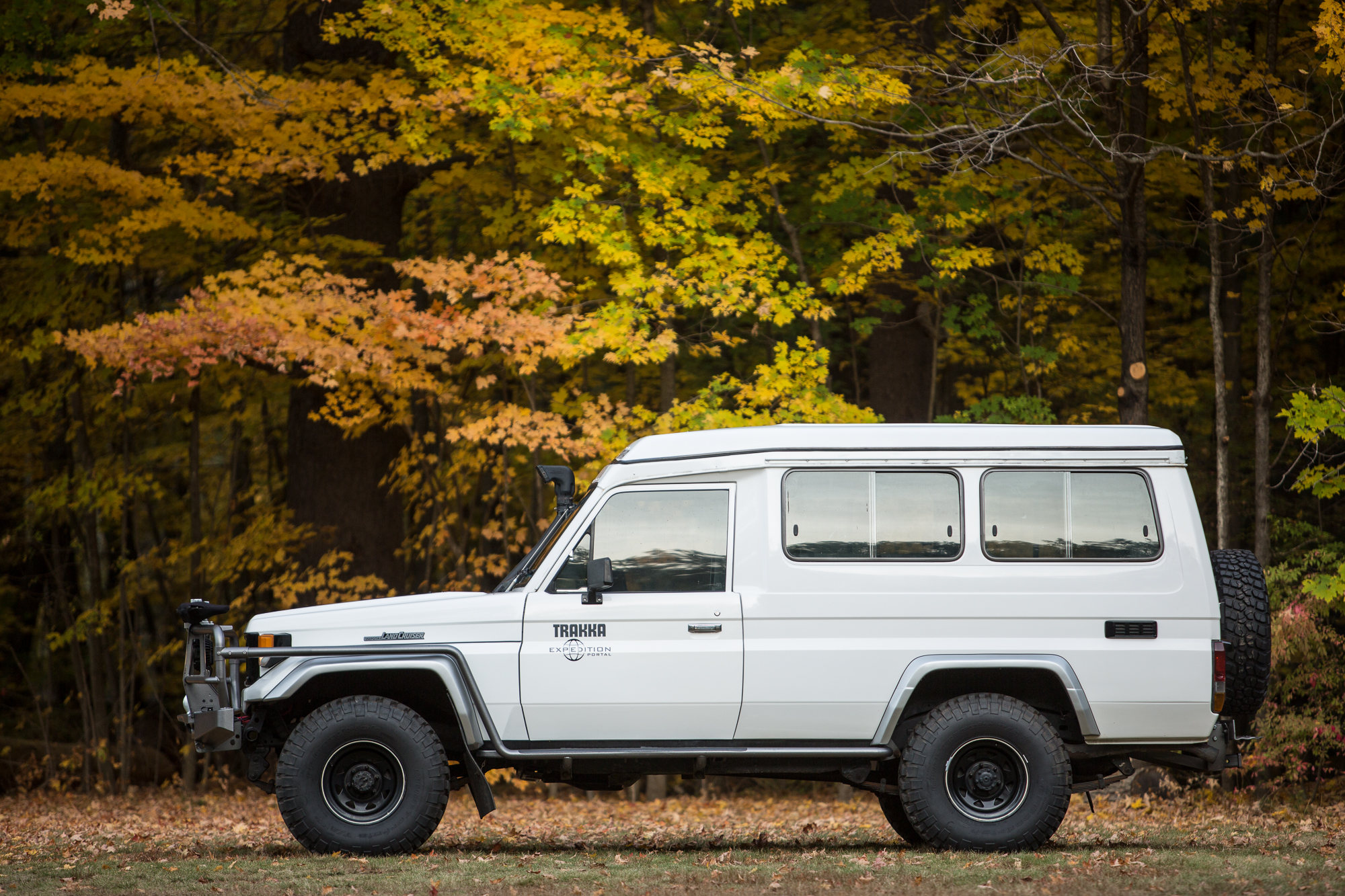 Toyota first released the 75 series Land Cruiser in 1985 in the Australian and African markets, and produced them through 1999. They were built to be a workhorse vehicle for farmers and miners alike. Based on their size, function, and reliability, it was also quite natural that over landers would be drawn to the platform as well. The 75 series were offered in two configurations. One option (as shown here) was the “troop carrier” configuration, which has two front doors, two rear doors, and seating for up to 11 people. The other configuration offered was the “ute”, which is basically a single cab pickup. Some of these “ute” style 75 series came with traditional pickup beds, while other came with flat utility style beds, or no beds at all.