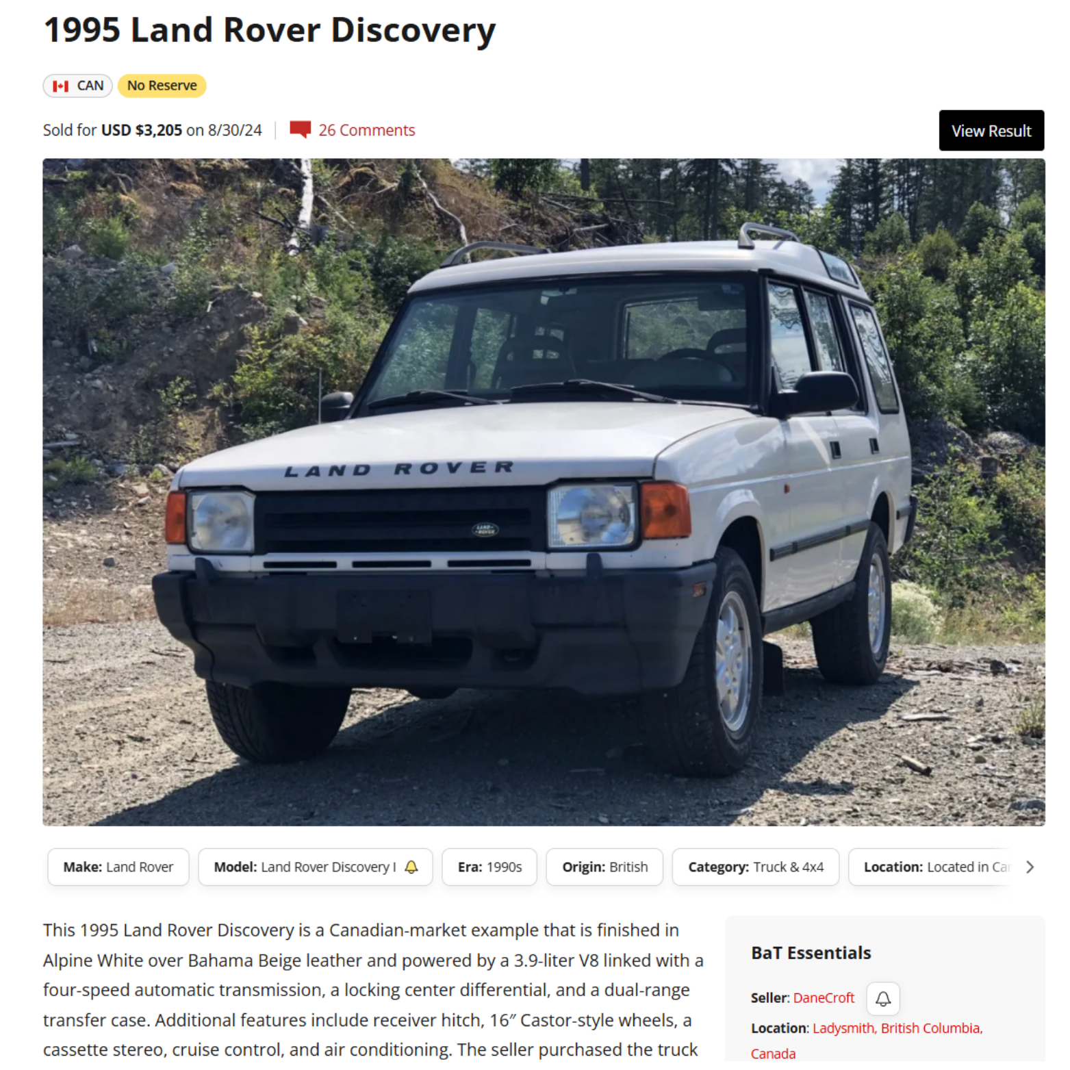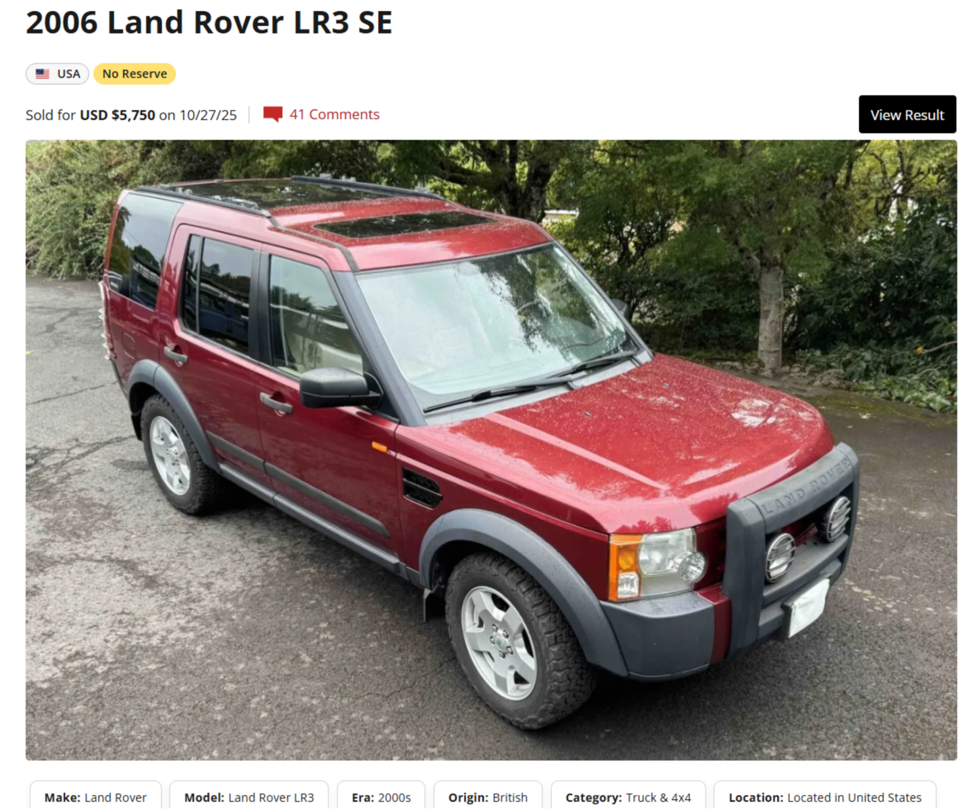 Full disclosure: I later purchased a Land Rover Discovery 3 on Bring a Trailer in late 2025. She’s a beauty and is patiently waiting at a friend’s place for me to collect her in a few months. Yes, my Bring a Trailer alerts are still active, but I’ve learned to limit my browsing to once a month. I’m not convinced my bank balance could survive another Land Rover joining the family. The following are our hard-earned tips for buying a peach on BAT, while avoiding the lemons.