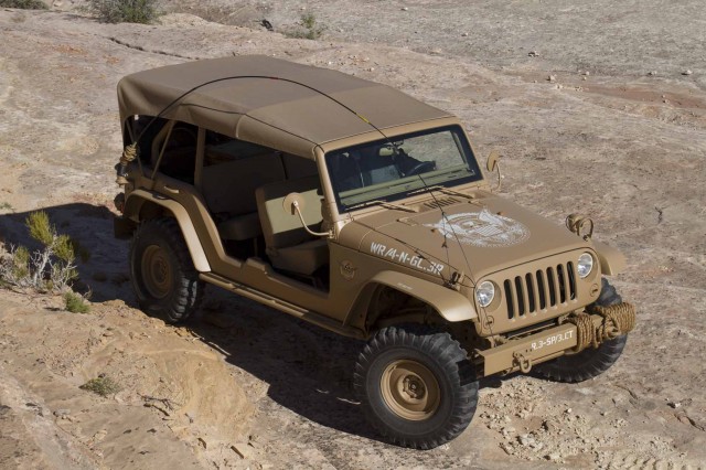 The connection between Jeep’s civilian and military service is unbreakable. Paying homage to that legacy is the Wrangler-based Staff Car. The Sandstorm color scheme, and open-air sides give the Staff Car a no-nonsense presence, befitting of a battle hardened veteran.