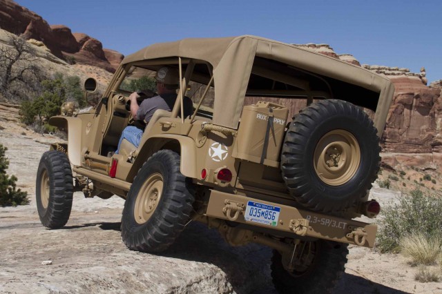 The 16-inch wheels and 35-inch military inspired tires give the Staff Car a burly stance and the J8 front and rear bumpers offer maximum utility.