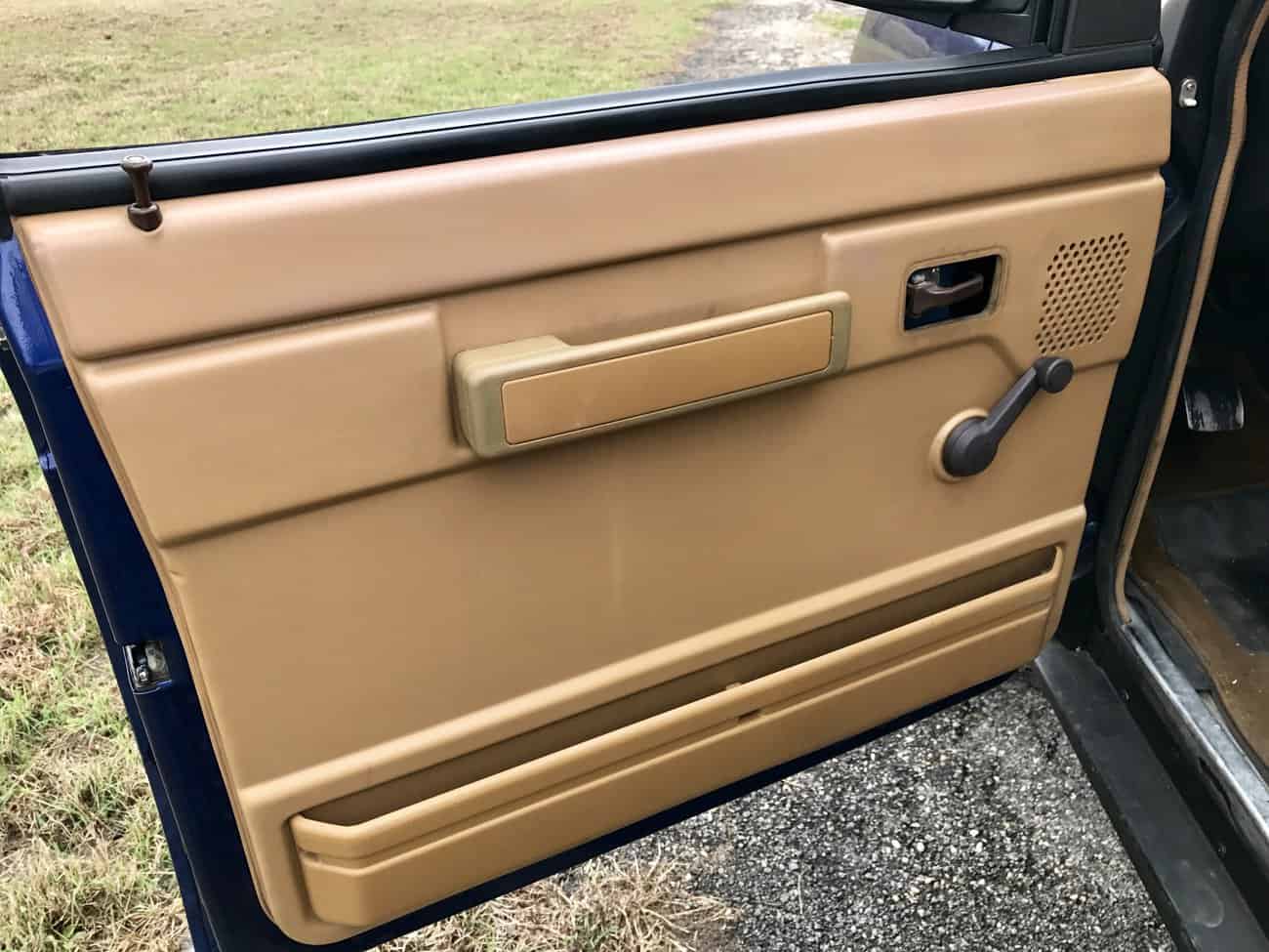 The deep blue paint appears to be the original and all body panels look straight and corrosion free. The interior is worn from normal use, but free of tears with minor stains and scuff marks appearing on the foot pedals and floor mats. An aftermarket CD player replaces the factory radio. The dash plastic looks clean and crack free and the shifter boots look as if they are brand new. The driver’s door handle bezel is missing and there is some light scuffing on the panel. The seats transmission and windows are all manual, a rare triad these days. Believe it or not, the factory air conditioning is also functional.