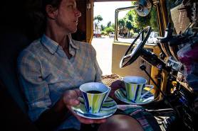 Other overlanders taught us how to make a great Moccachino. Mix in a table-spoon of instant coffee, sugar and a splash of cold water in a cup and start stirring. After a while you’ll be getting a light brown frothing or foamy kind of liquid. When it is homogenous, it’s time to add boiling water and voilà you have a perfect moccachino.