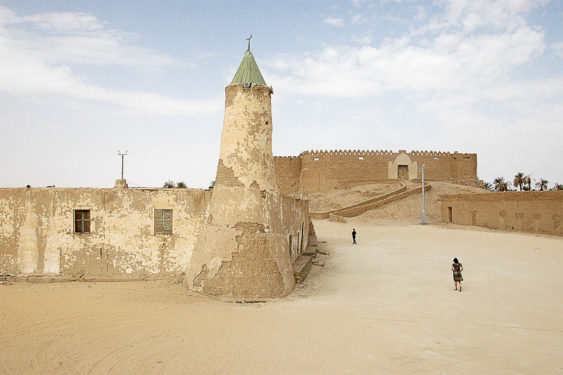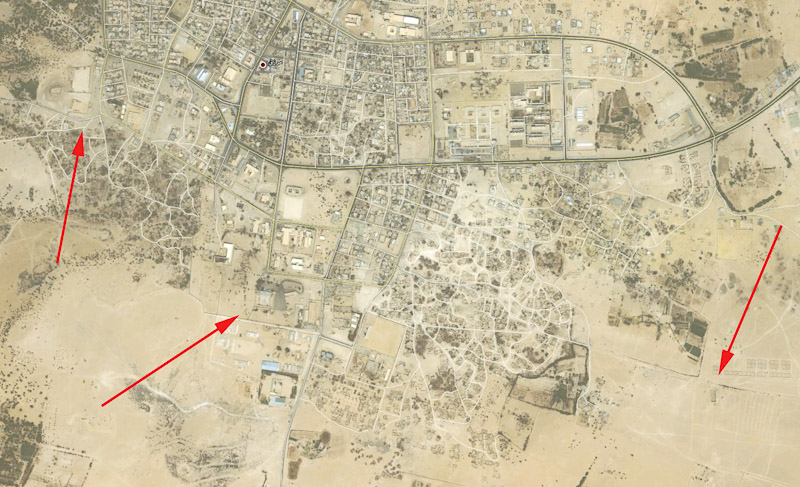 But standing in the square it didn’t add up. In all the references I have read, nothing is mentioned of a Mosque, yet it dominates the central square. Also, in Bill Kennedy-Shaw’s book about the LRDG, he says the road led straight to the Fort. This road took several turns! Within our team of archaeologists we were lucky to have Dr. Martin Sterry. Martin’s specialty is the analysis of areal photography in search of archaeological sites and, by chance, he had a 1958 areal photograph of Murzuq. On it can clearly be seen the old sand track into town, leading to another fort. This second fort is a more likely candidate, as it is still a military establishment today.