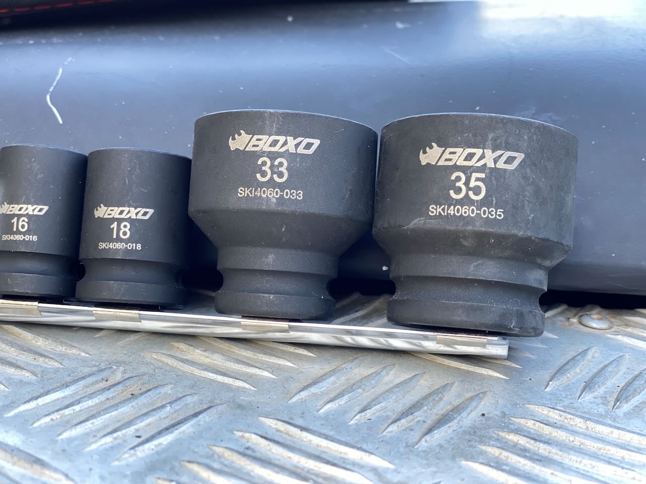 - (2) 1/2-inch drive 6-point standard impact sockets, 33 and 35 millimeter